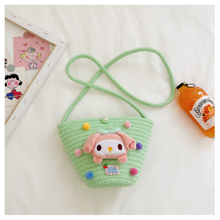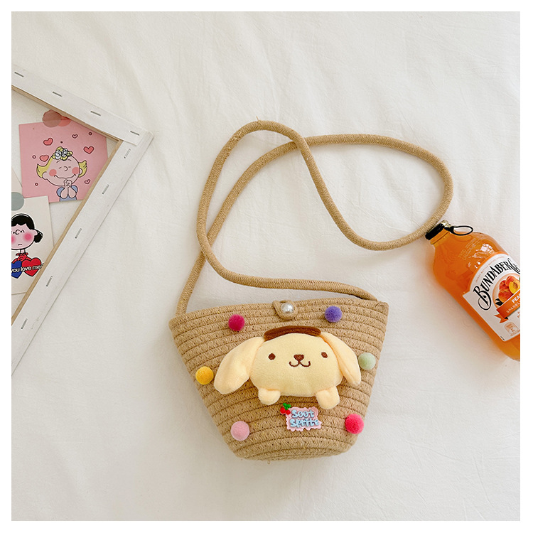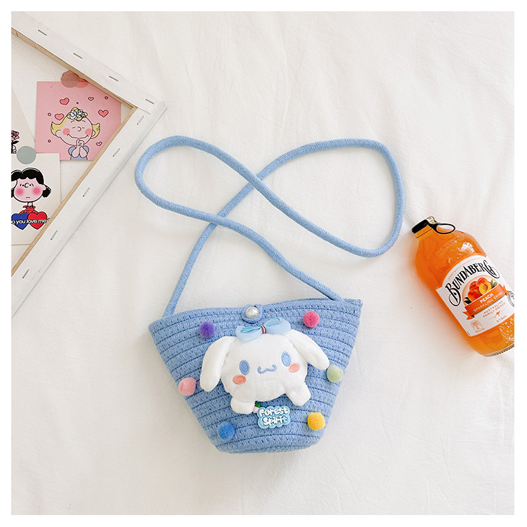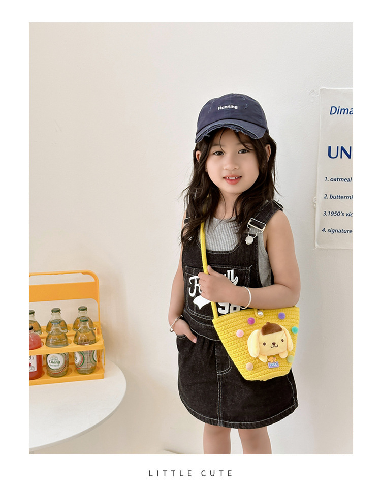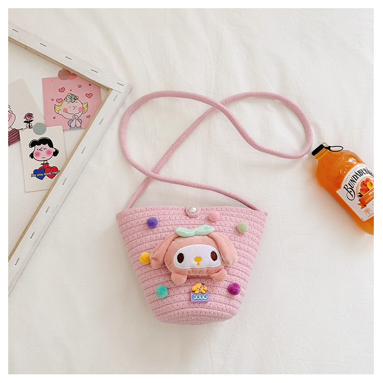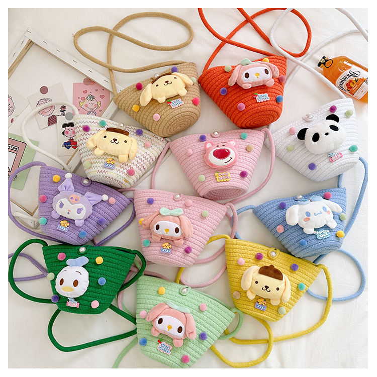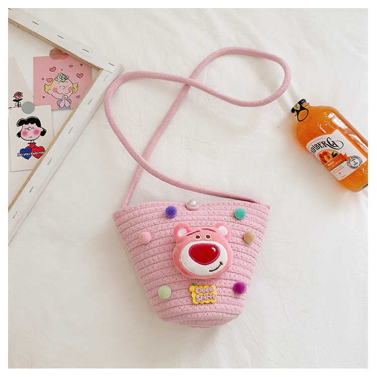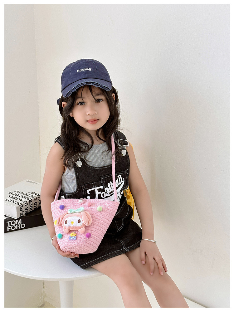 일본식 귀여운 만화 작은 가방 어린이 밀짚 가방 미니 가방 어린이 숄더백 비치 플레이 크로스 바디 백