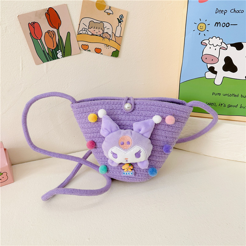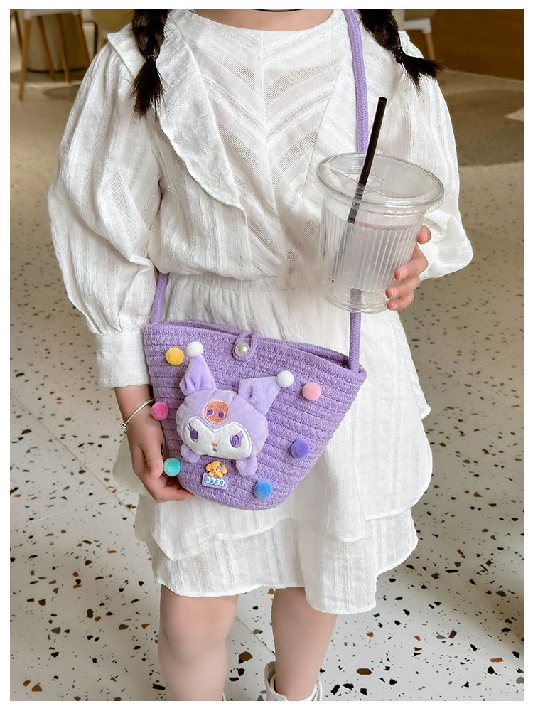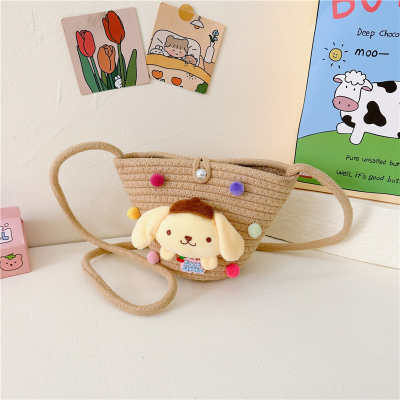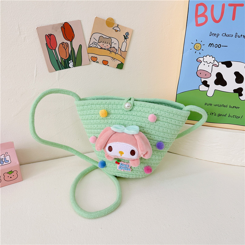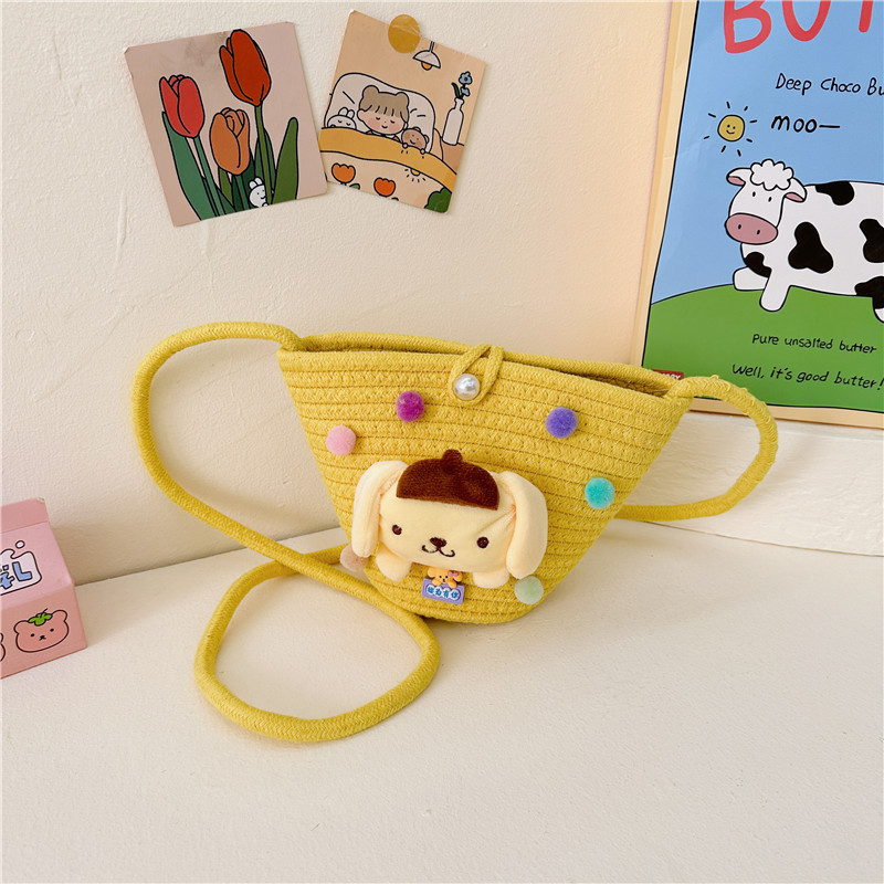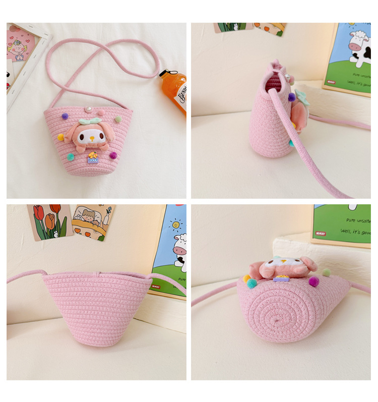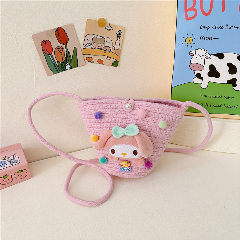 일본식 귀여운 만화 작은 가방 어린이 밀짚 가방 미니 가방 어린이 숄더백 비치 플레이 크로스 바디 백