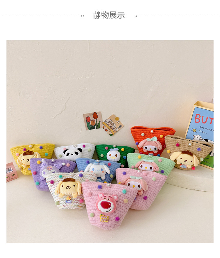 일본식 귀여운 만화 작은 가방 어린이 밀짚 가방 미니 가방 어린이 숄더백 비치 플레이 크로스 바디 백스토어 가기