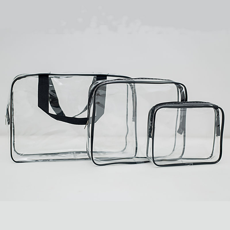맞춤형 pvc 투명 화장품 가방 3 종 세트 대용량 휴대용 세척 휴대용 여행 스킨 케어 보관 세척