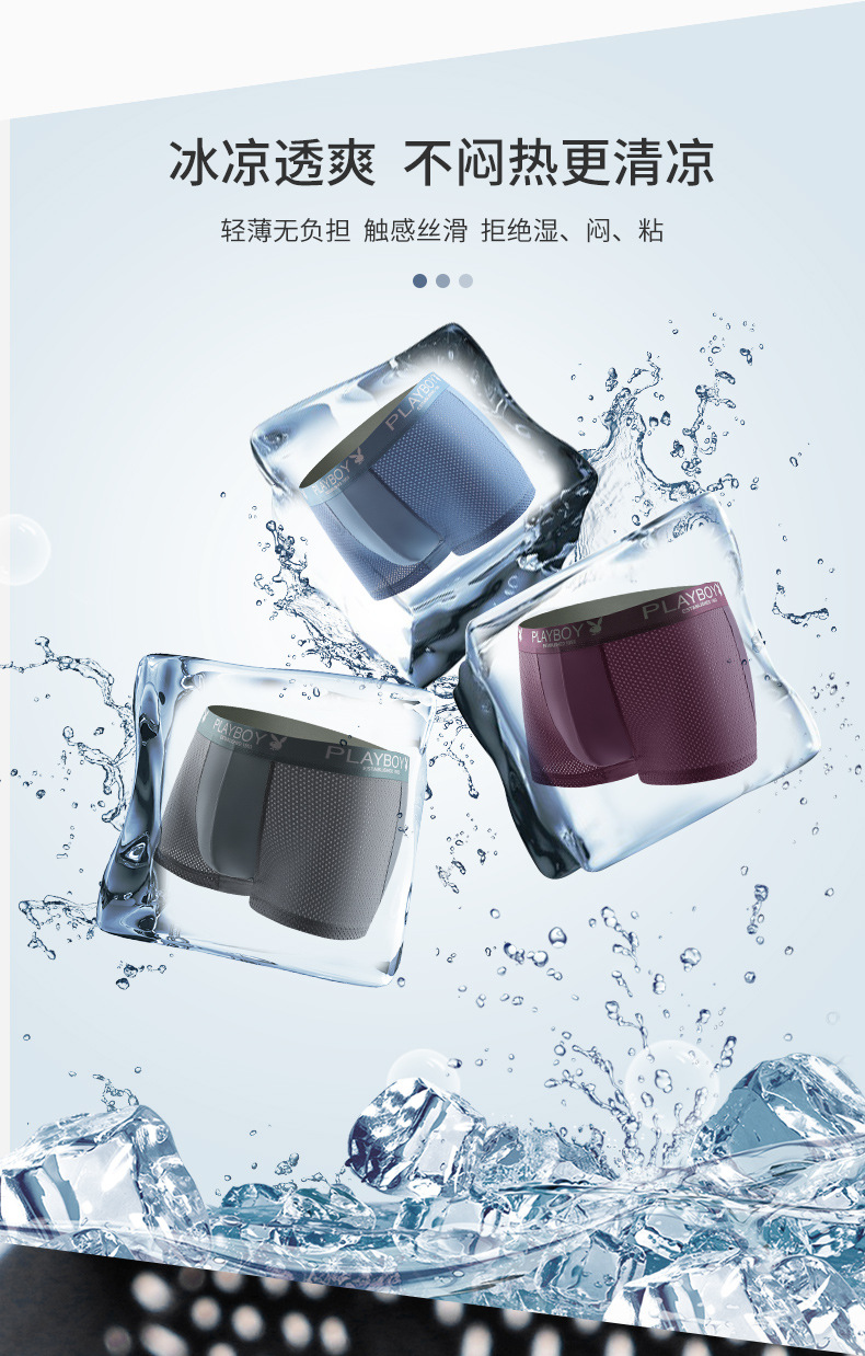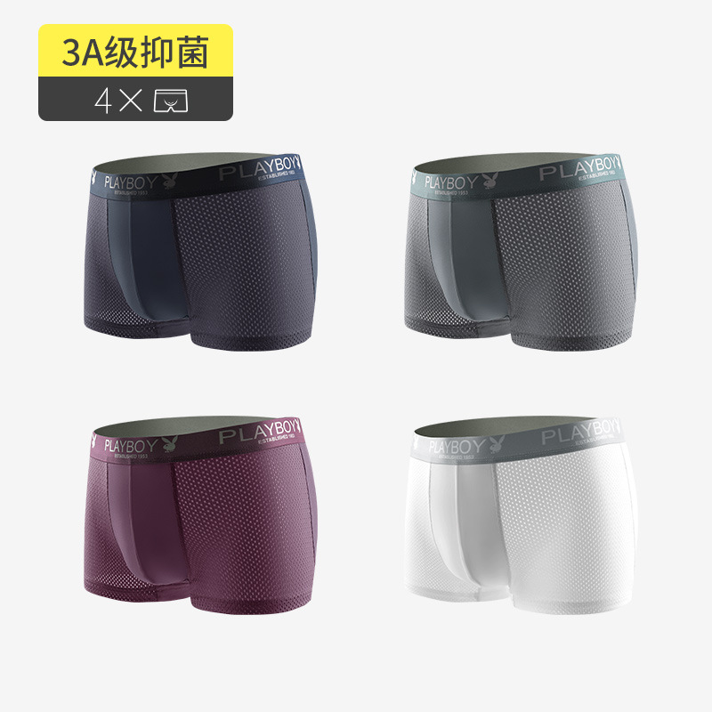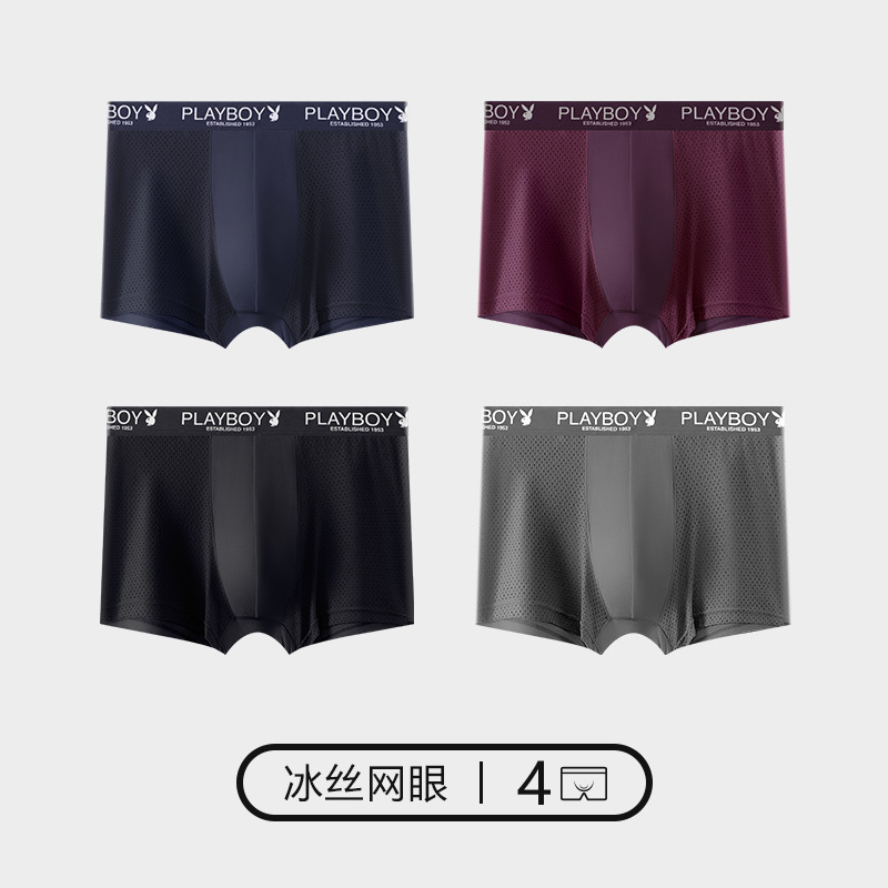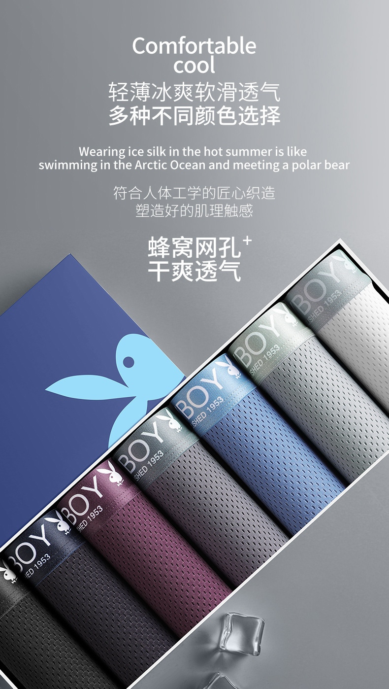 플레이보이 남성 속옷 아이스 실크 통기성 소년 여름 네 모서리 얇은 바지 메쉬 복서 반바지