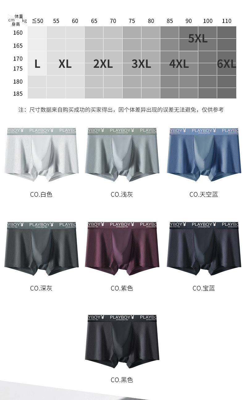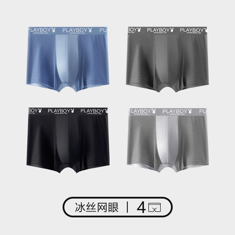 플레이보이 남성 속옷 아이스 실크 통기성 소년 여름 네 모서리 얇은 바지 메쉬 복서 반바지스토어 가기