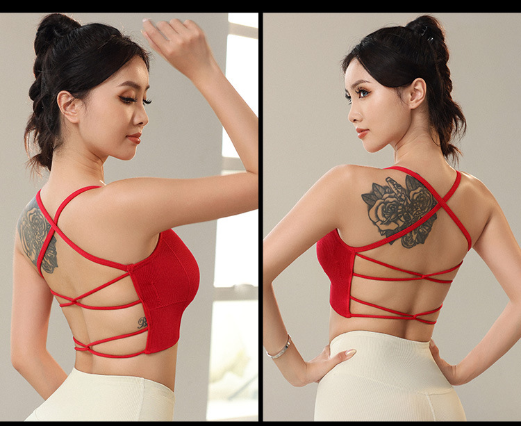 스레드 크로스 백 스포츠 브라 빠른 건조 충격 방지 스포츠 속옷 대형 등이없는 피트니스 요가 조끼 빨간 여성스토어 가기