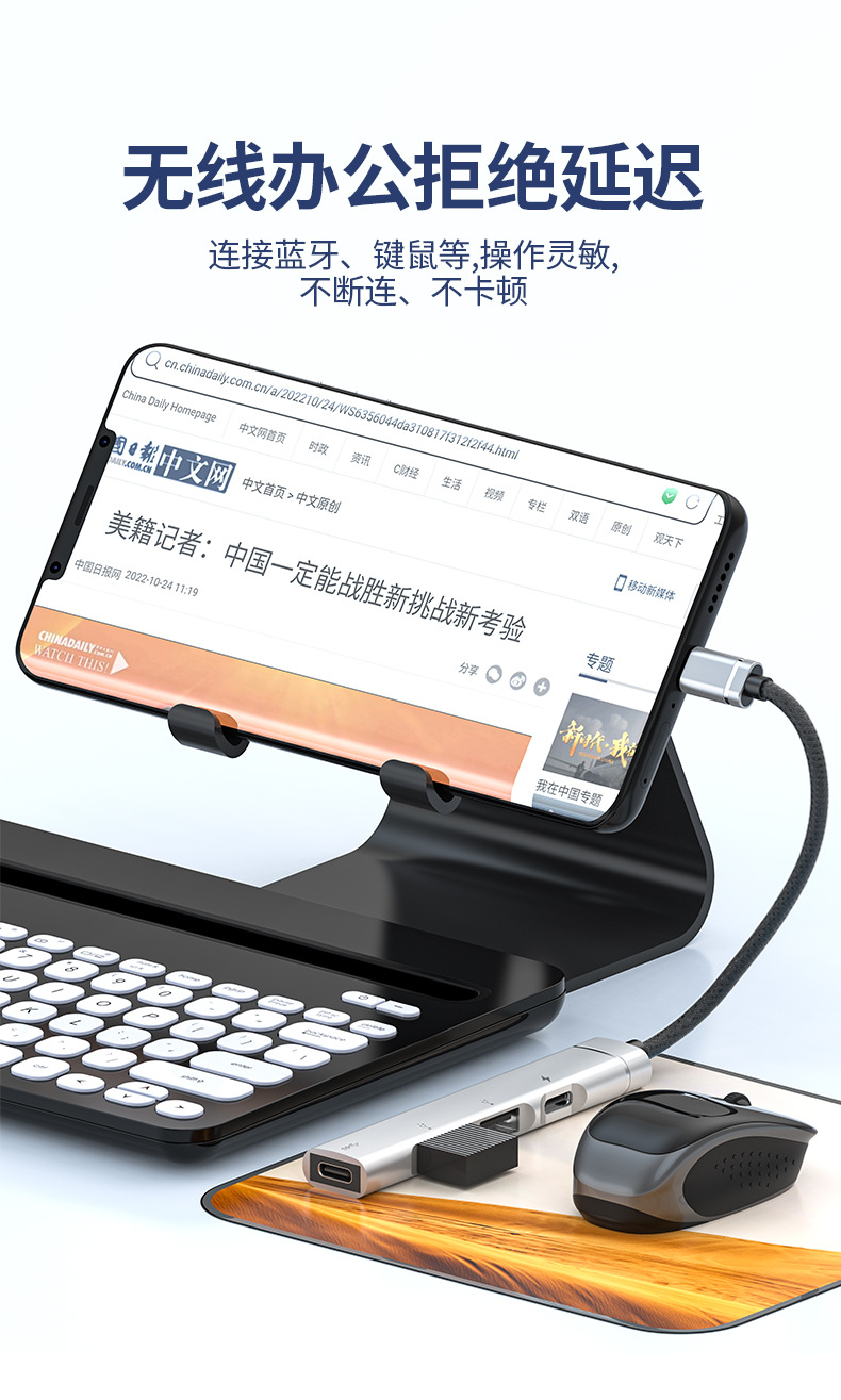 타입-C 도킹 스테이션 USB 허브 마우스 키보드 블루투스 휴대폰 태블릿 노트북 확장 스테이션 PD 충전스토어 가기