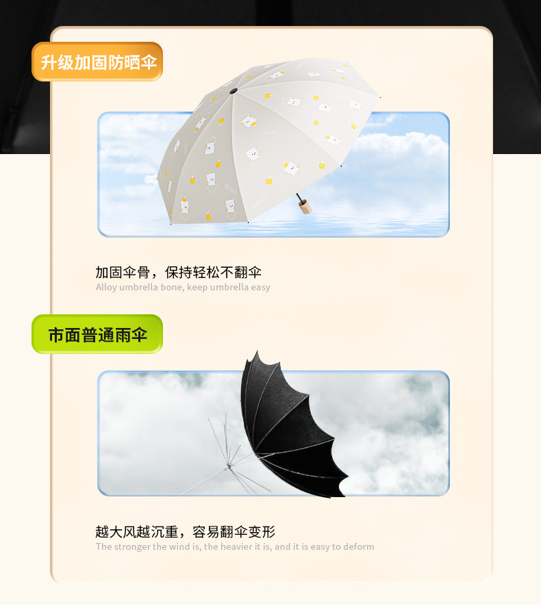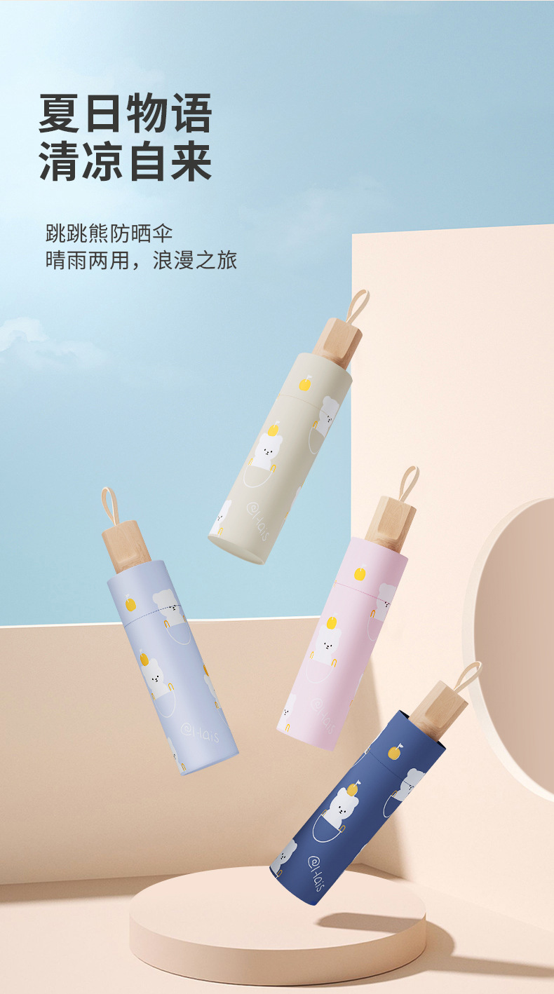 귀여운 만화 점프 곰 접는 우산 태양 보호 및 방수 이중 목적 파라솔 태양 우산 뜨거운 판매 우산스토어 가기