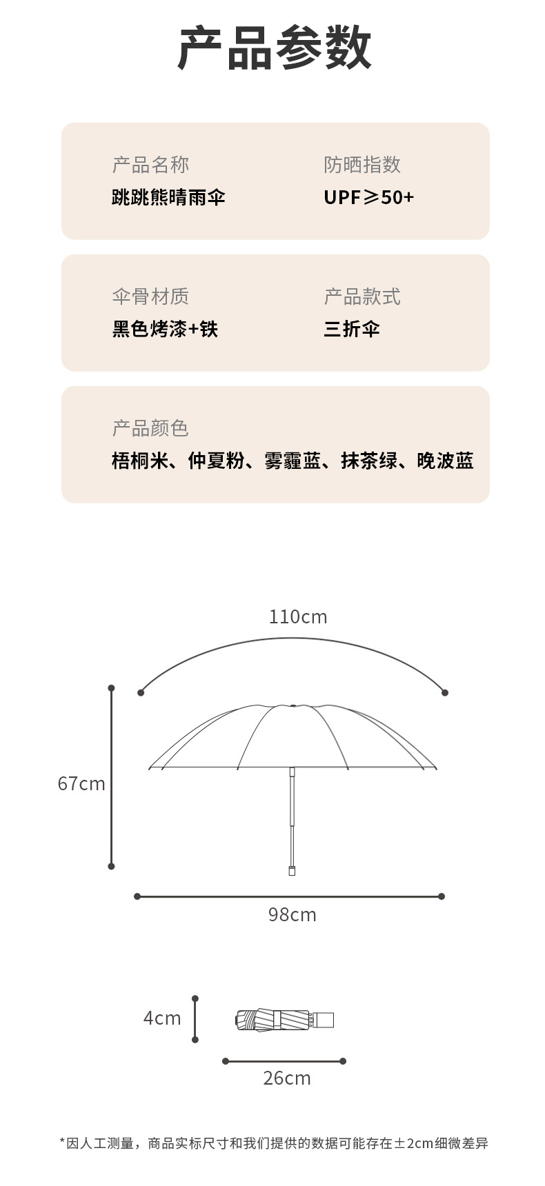 귀여운 만화 점프 곰 접는 우산 태양 보호 및 방수 이중 목적 파라솔 태양 우산 뜨거운 판매 우산