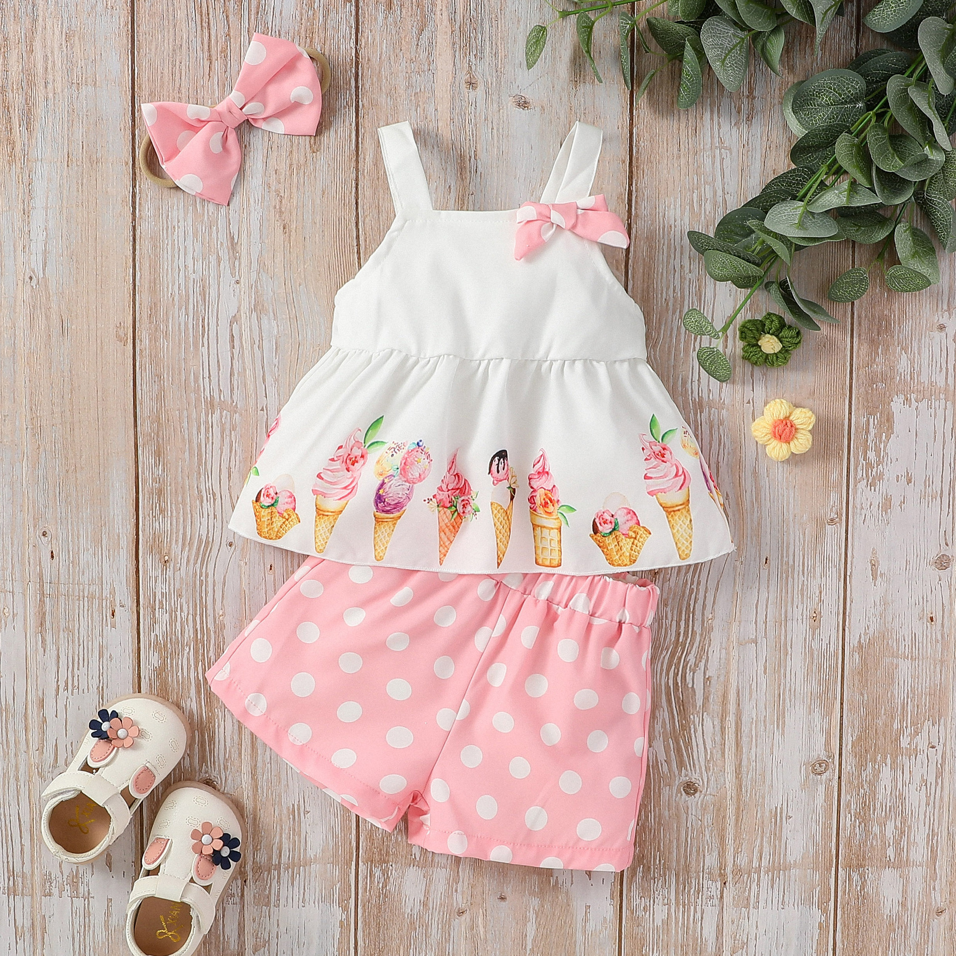 대외 무역 아마존 크로스 국경 아동복 슬링 웨이브 포인트 아이스크림 소녀 세트