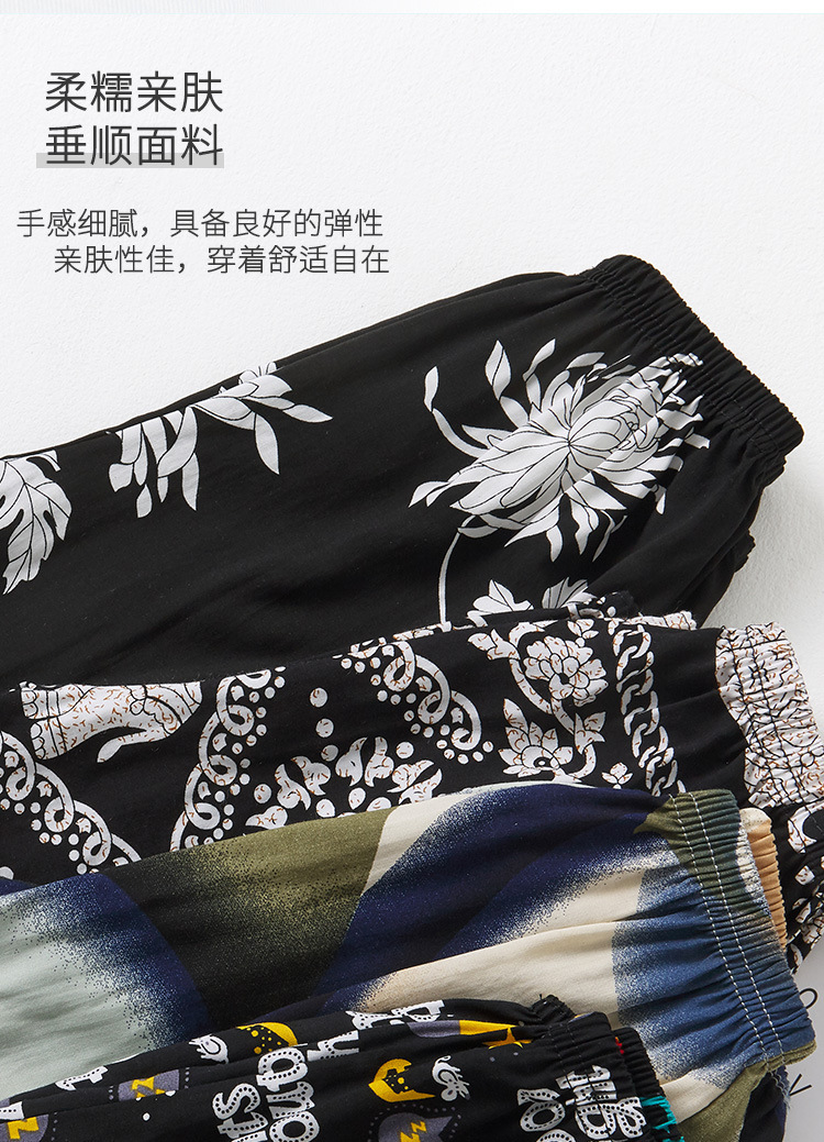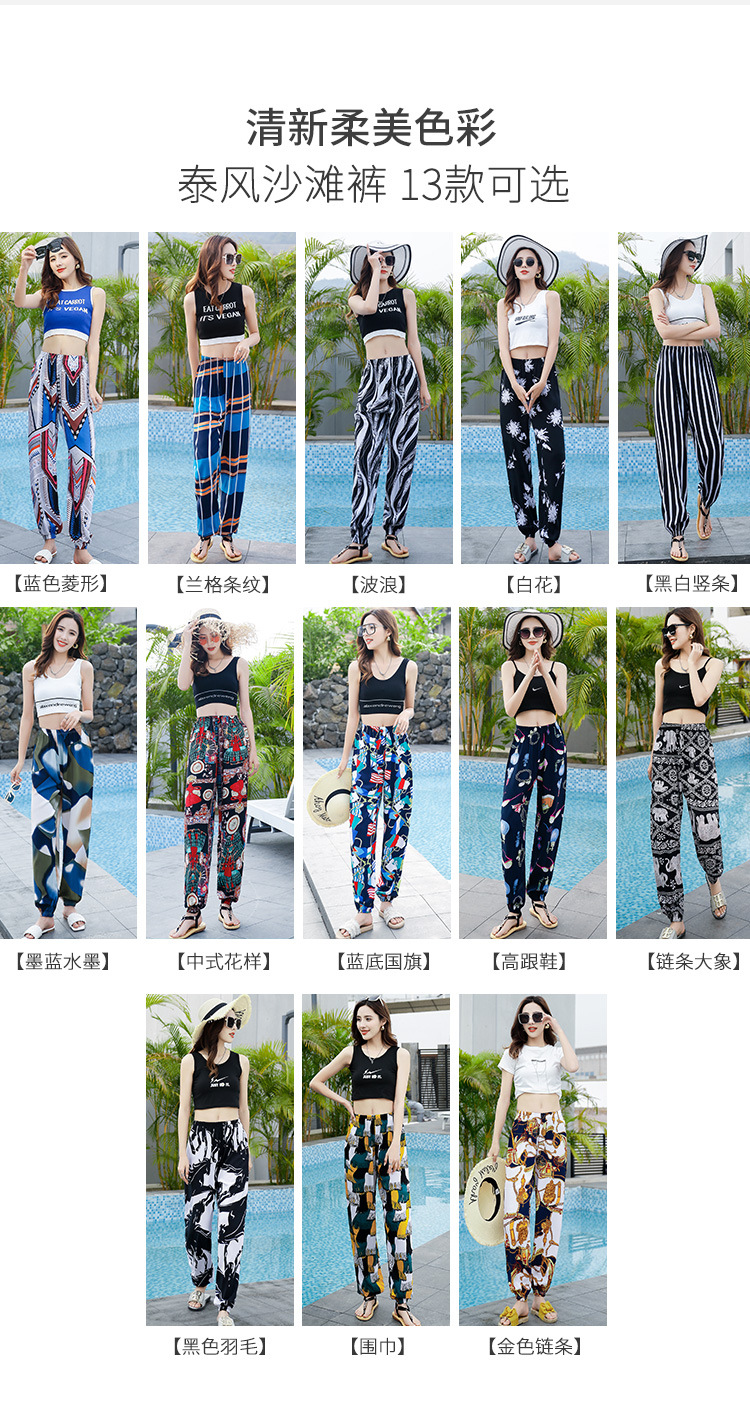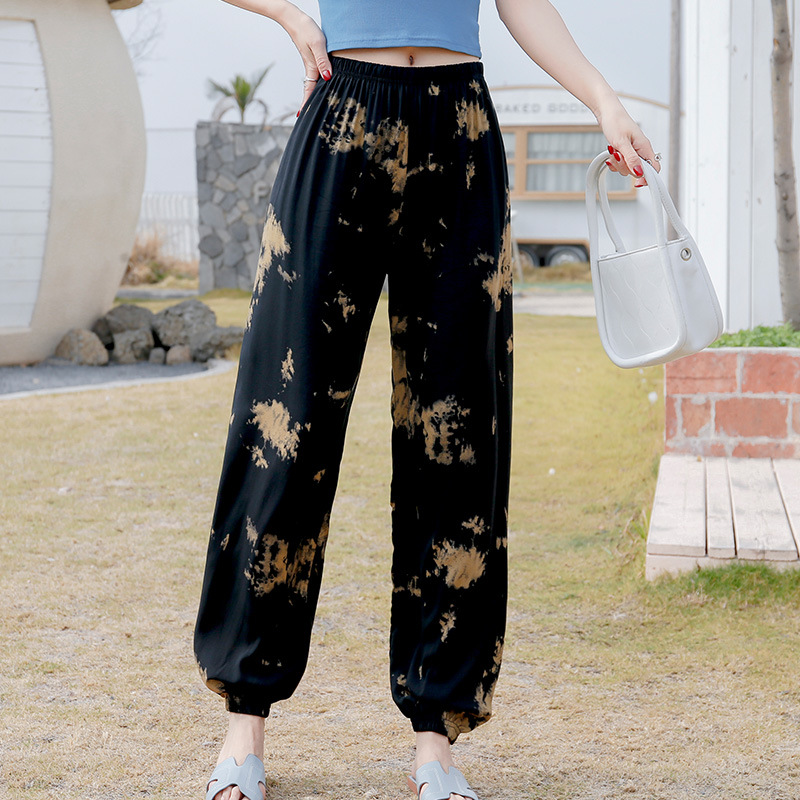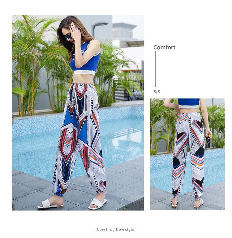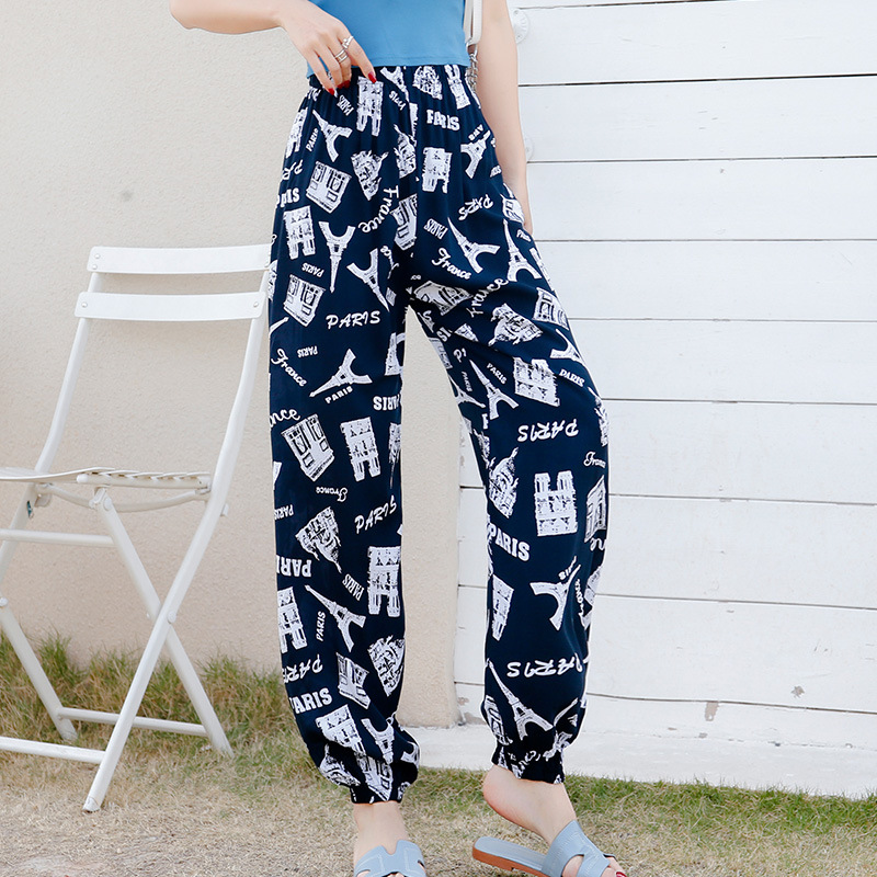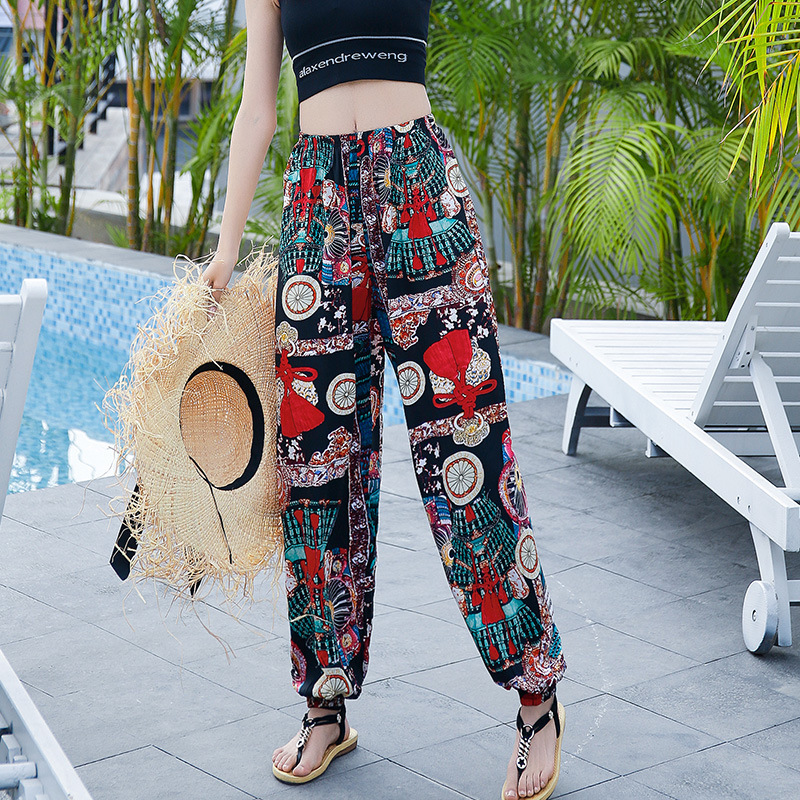 여성용 모기 방지 바지 면 실크 잠옷 바지 성인 여름 얇은 블루머 성인 캐주얼 타이 에스닉 스타일 비치 바지