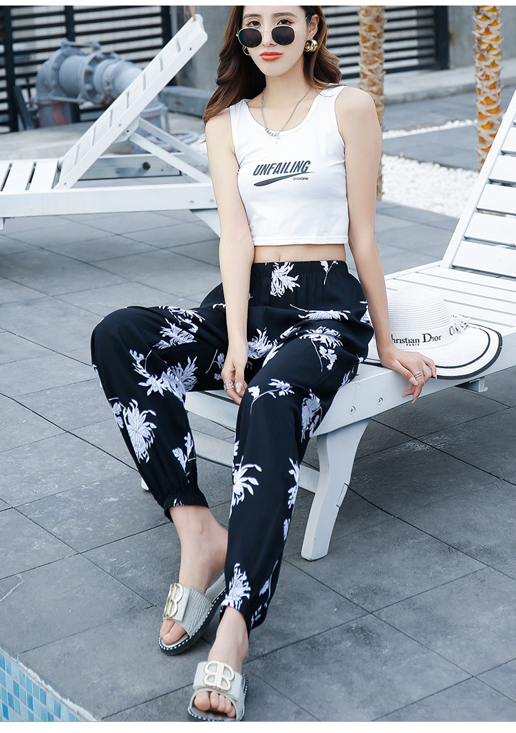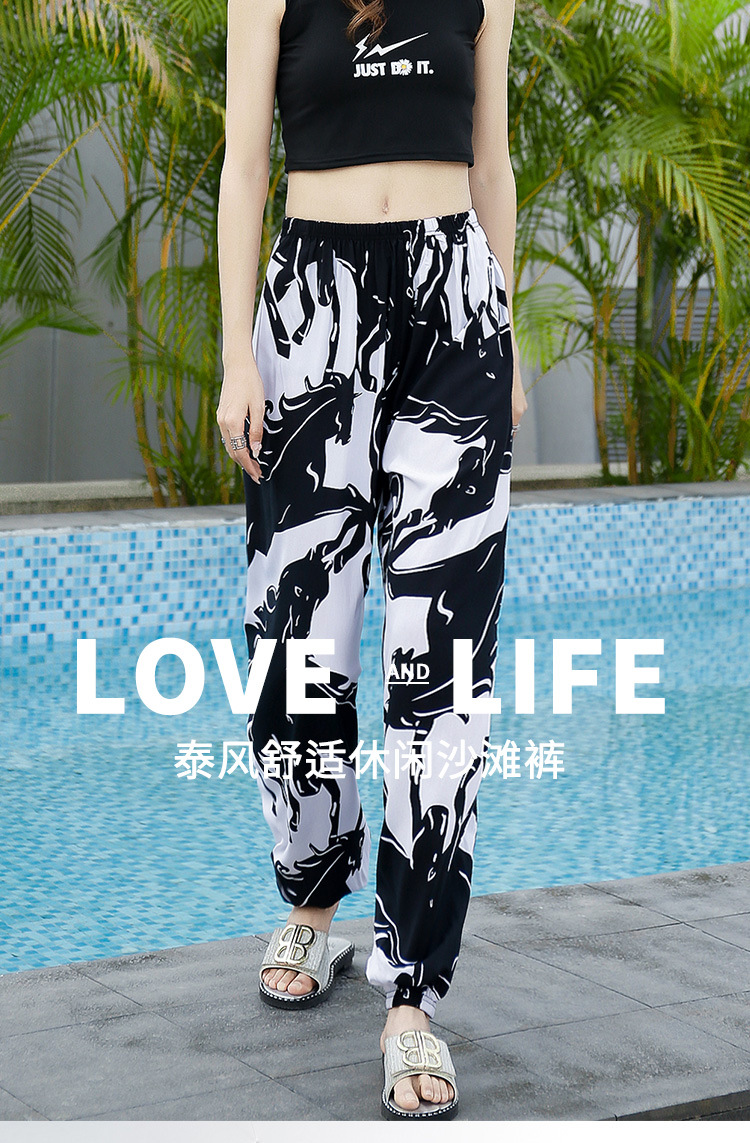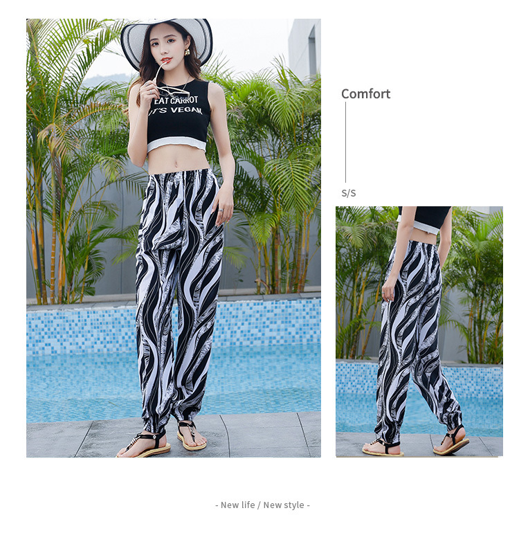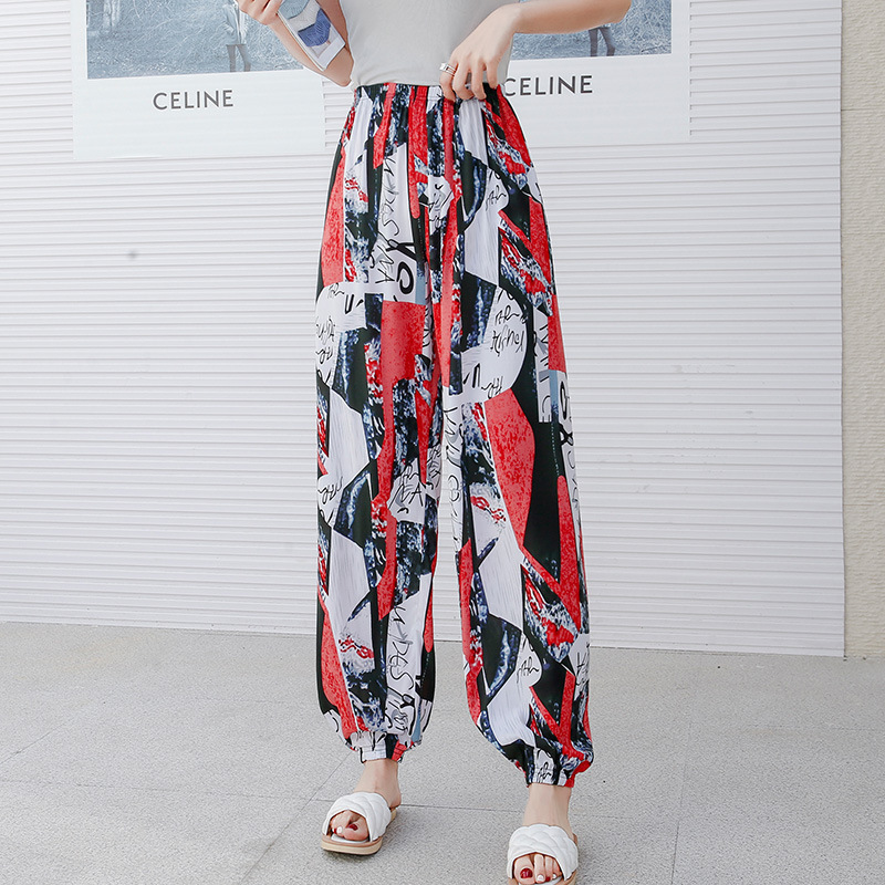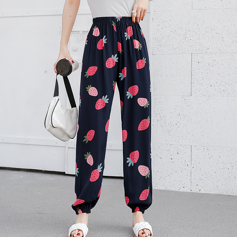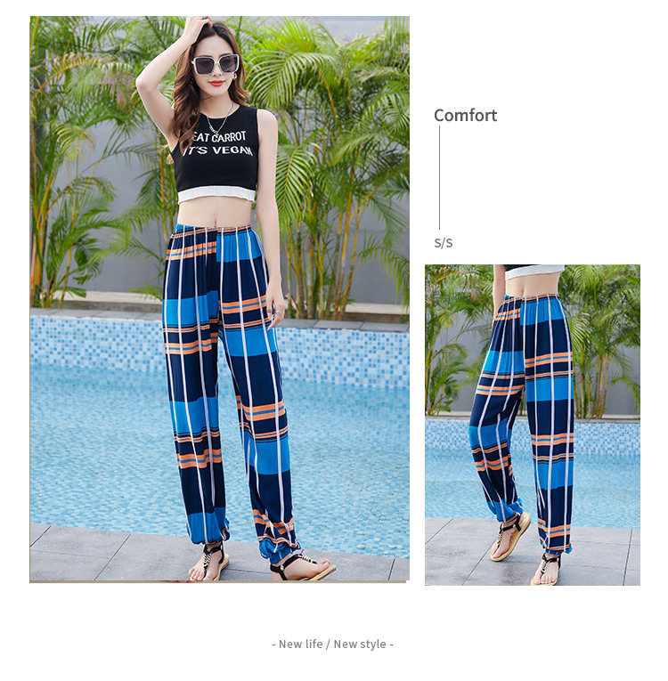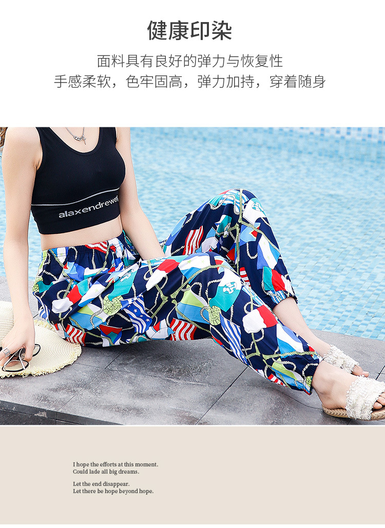 여성용 모기 방지 바지 면 실크 잠옷 바지 성인 여름 얇은 블루머 성인 캐주얼 타이 에스닉 스타일 비치 바지