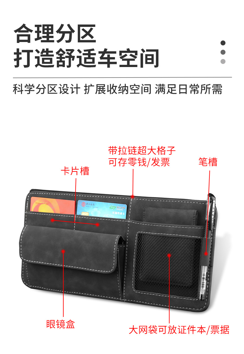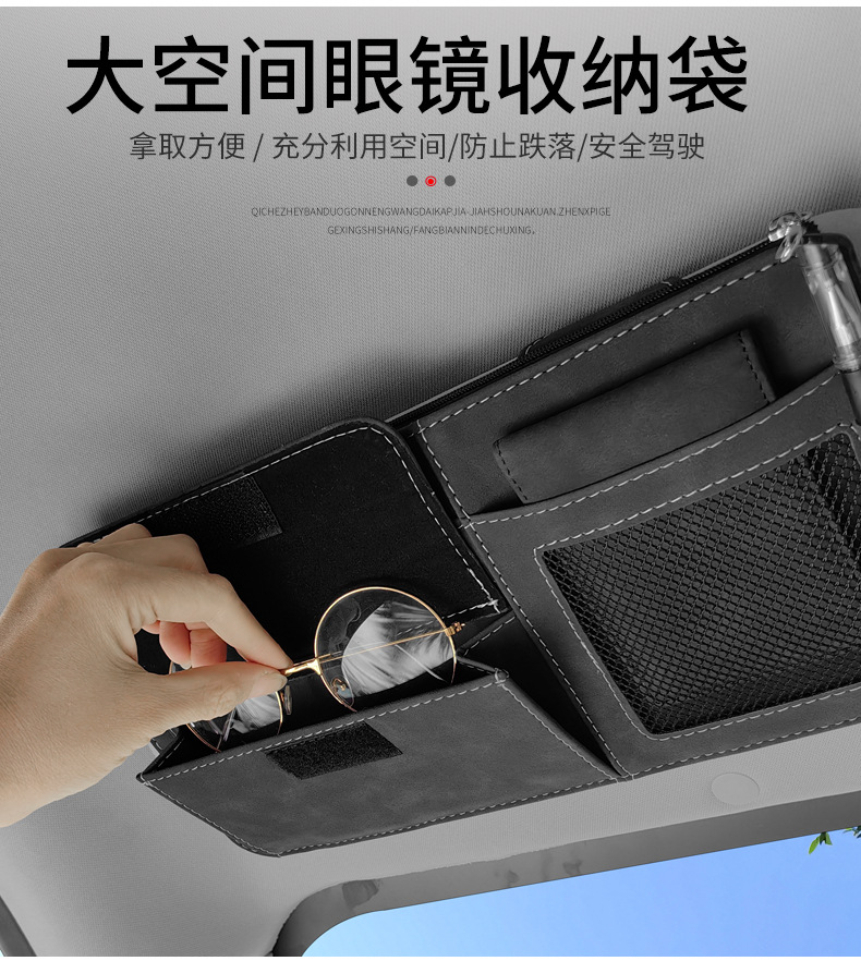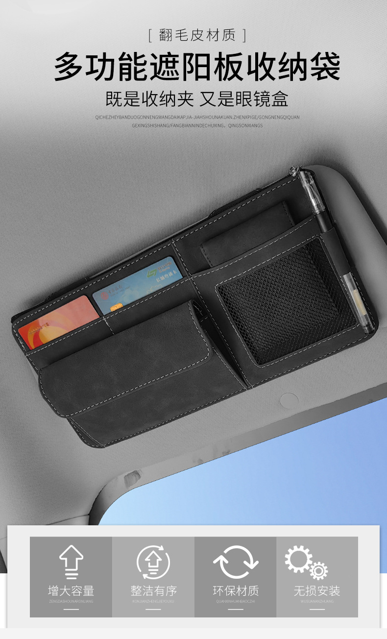 모피 자동차 태양 바이저 보관 가방 다기능 자동차 안경 홀더 카드 홀더 청구서 증명서스토어 가기