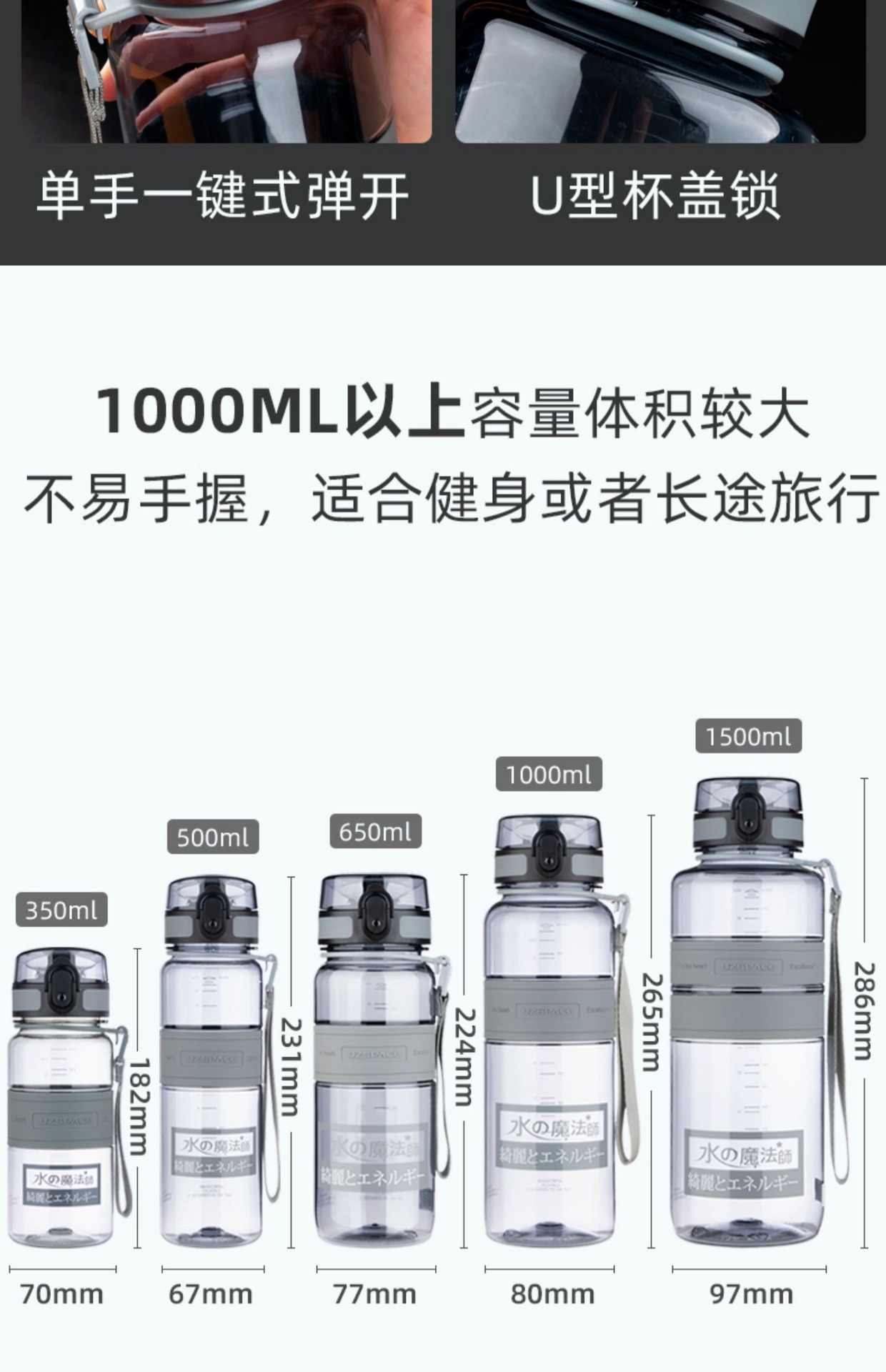 Youzhi 물컵 대용량 2000ml 공간 스포츠 컵 남성용 야외 고온 저항 여름 플라스틱 냄비스토어 가기