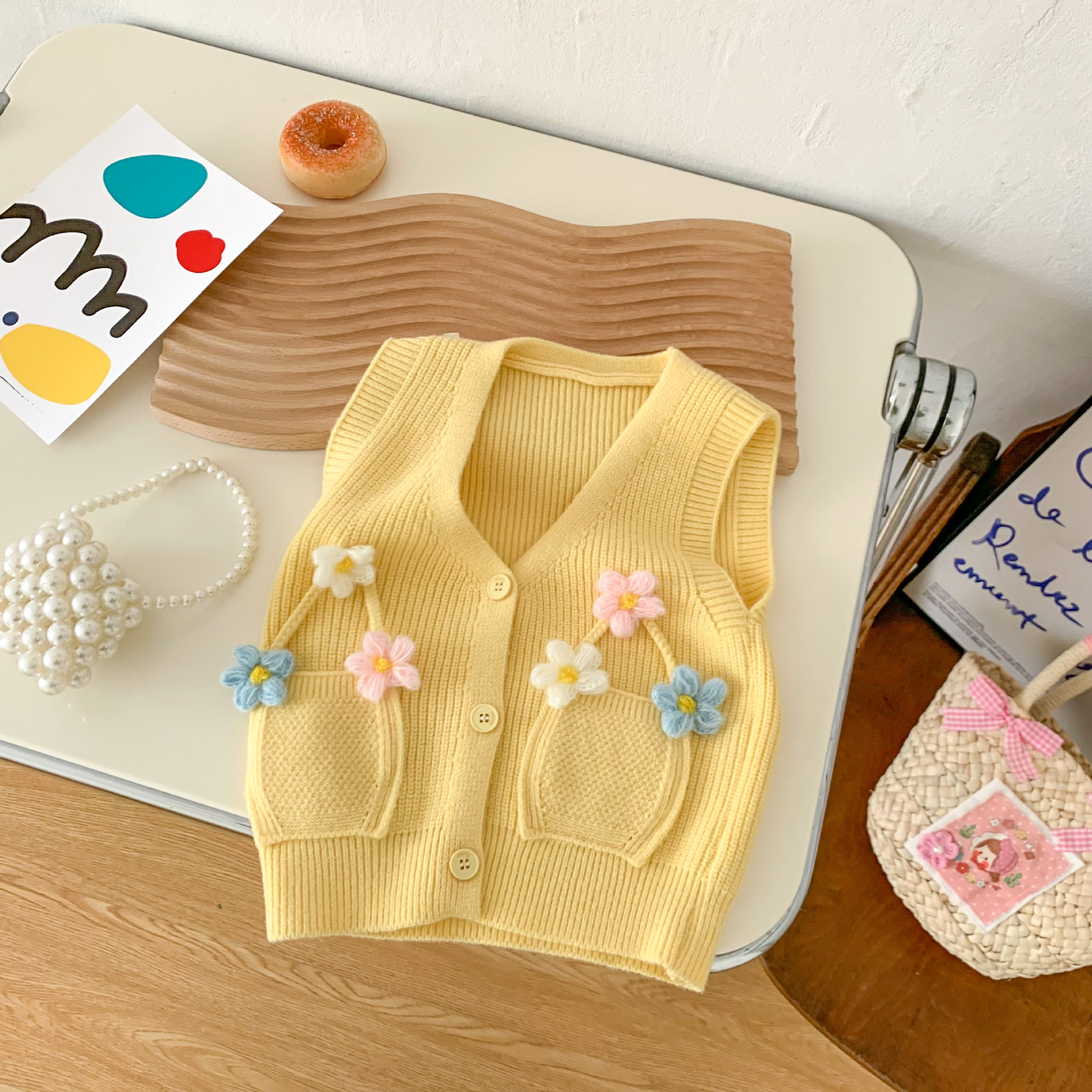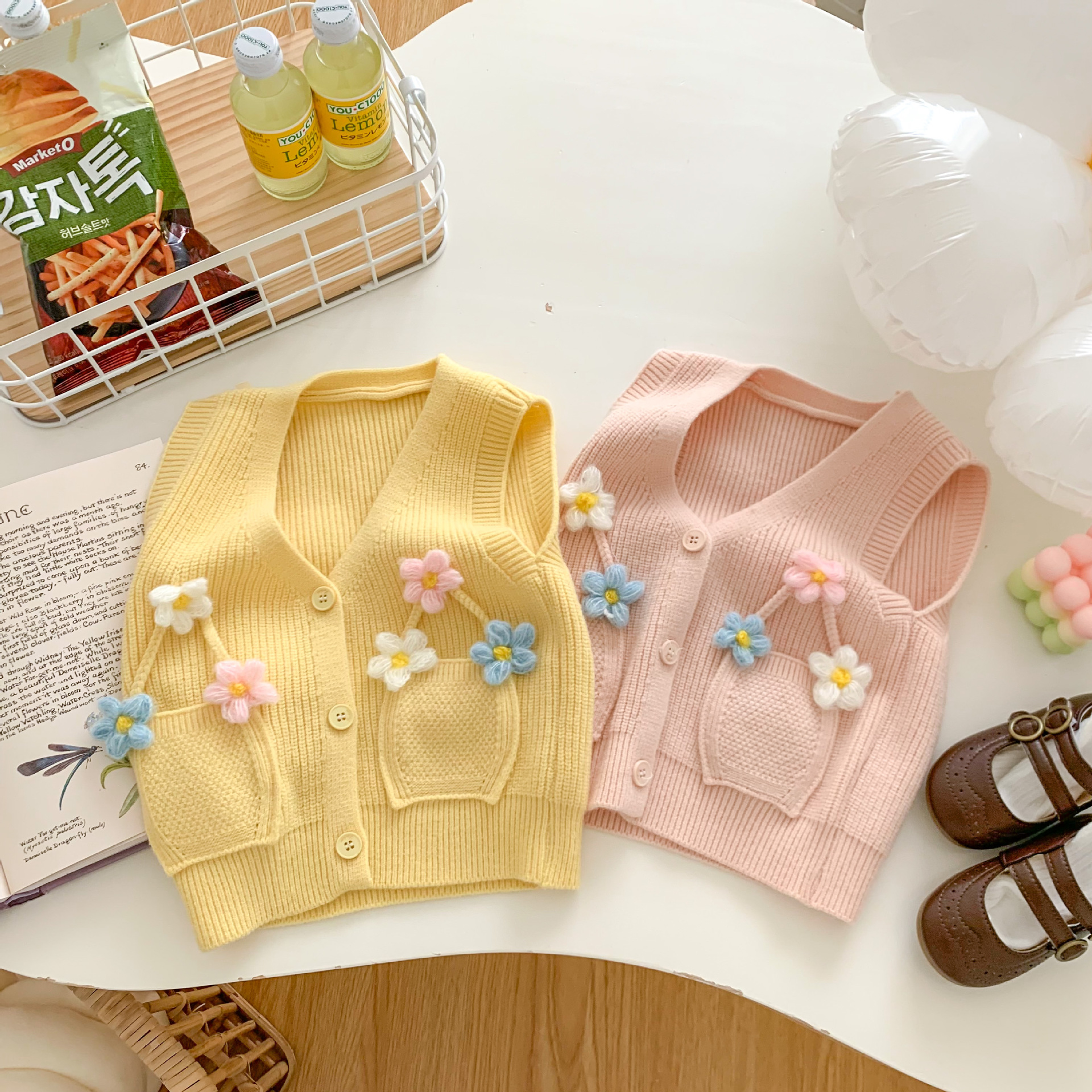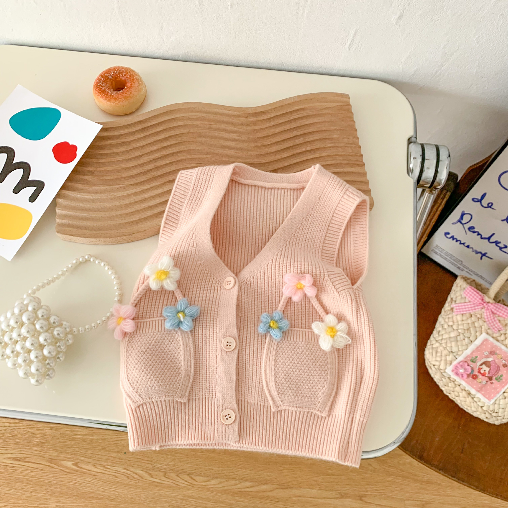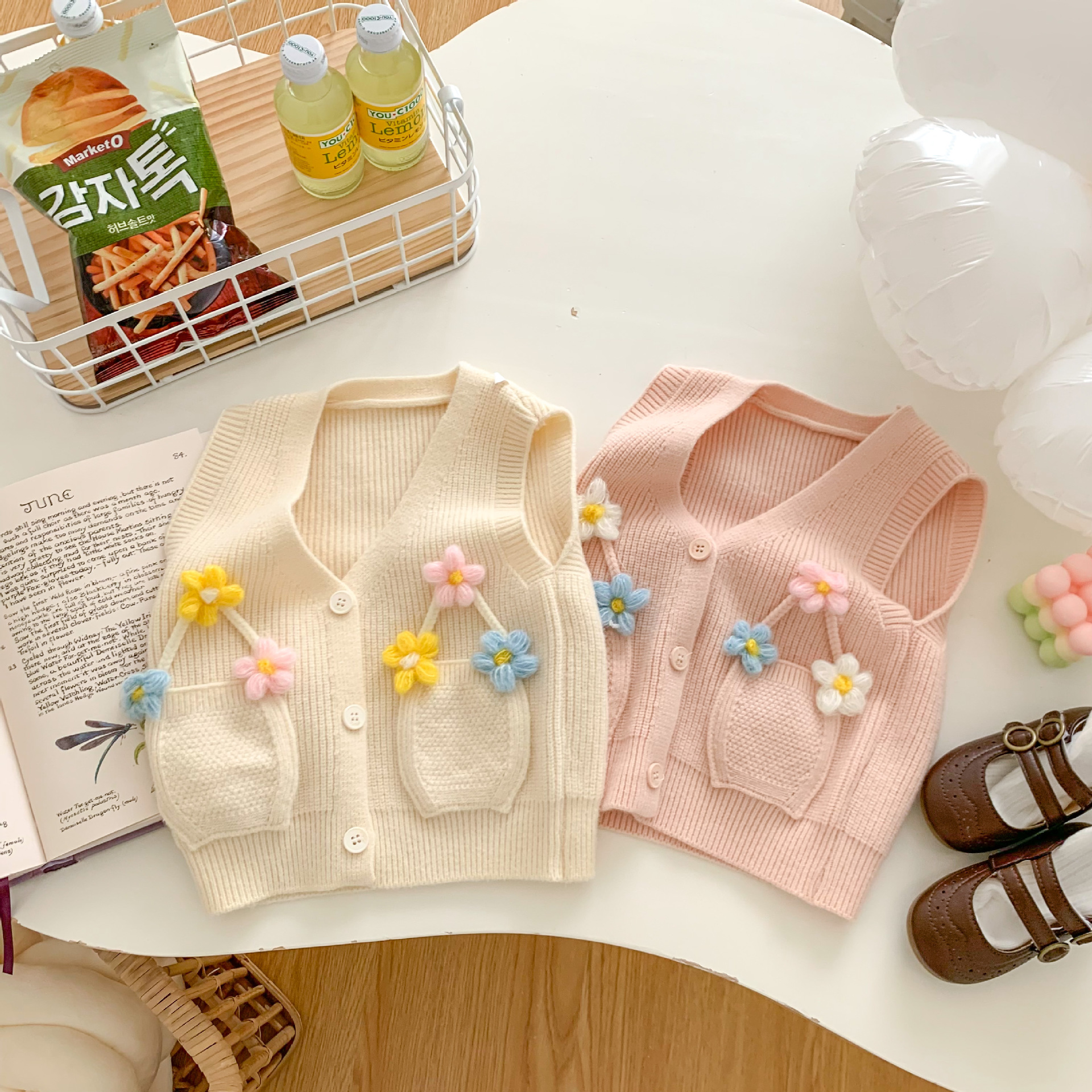 2023 년 봄과 가을 어린이 스웨터 소녀 카디건 만화 니트 조끼 조끼스토어 가기