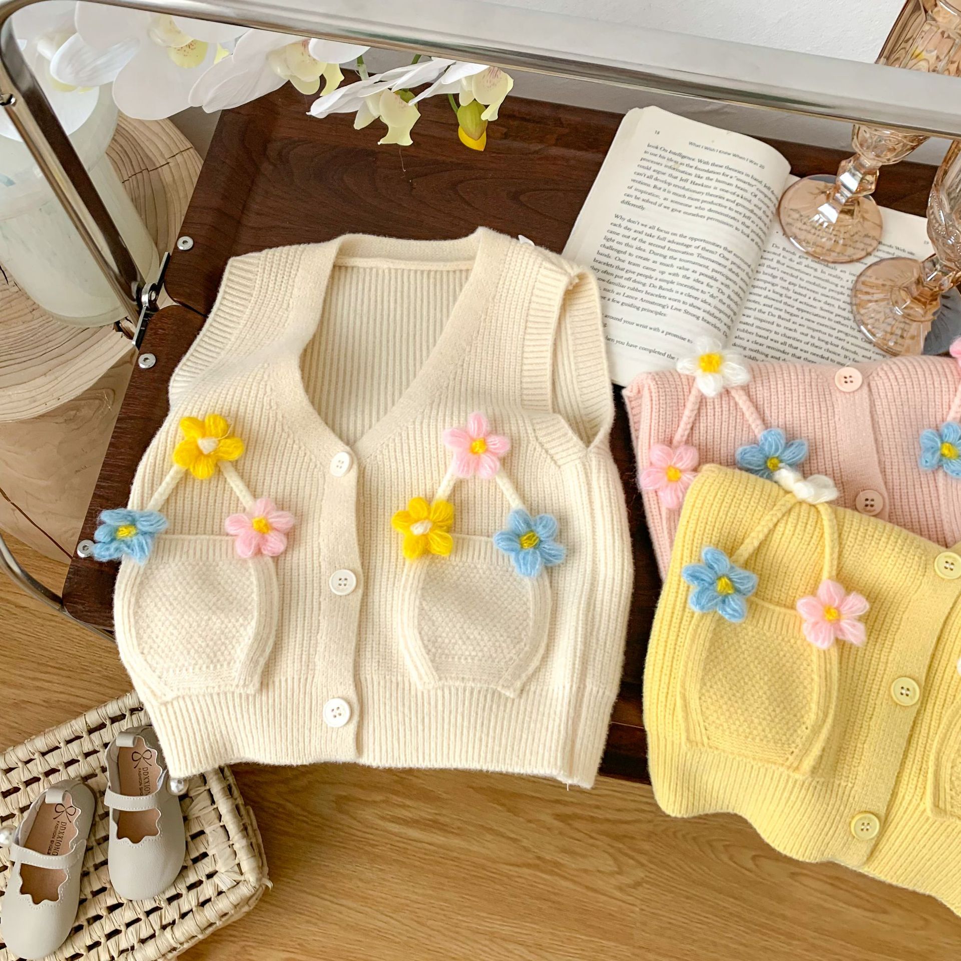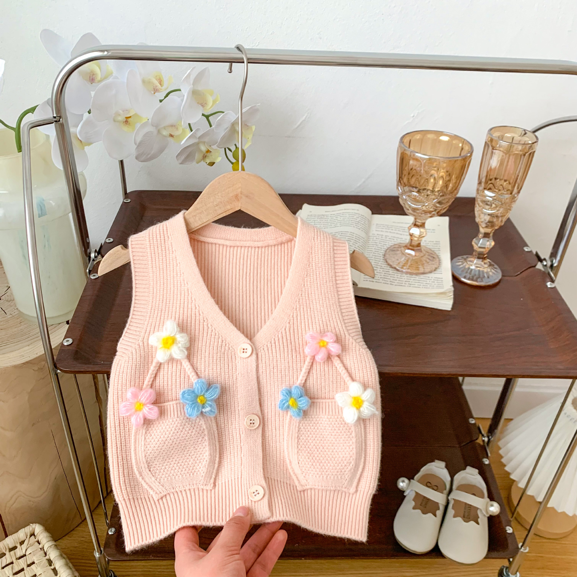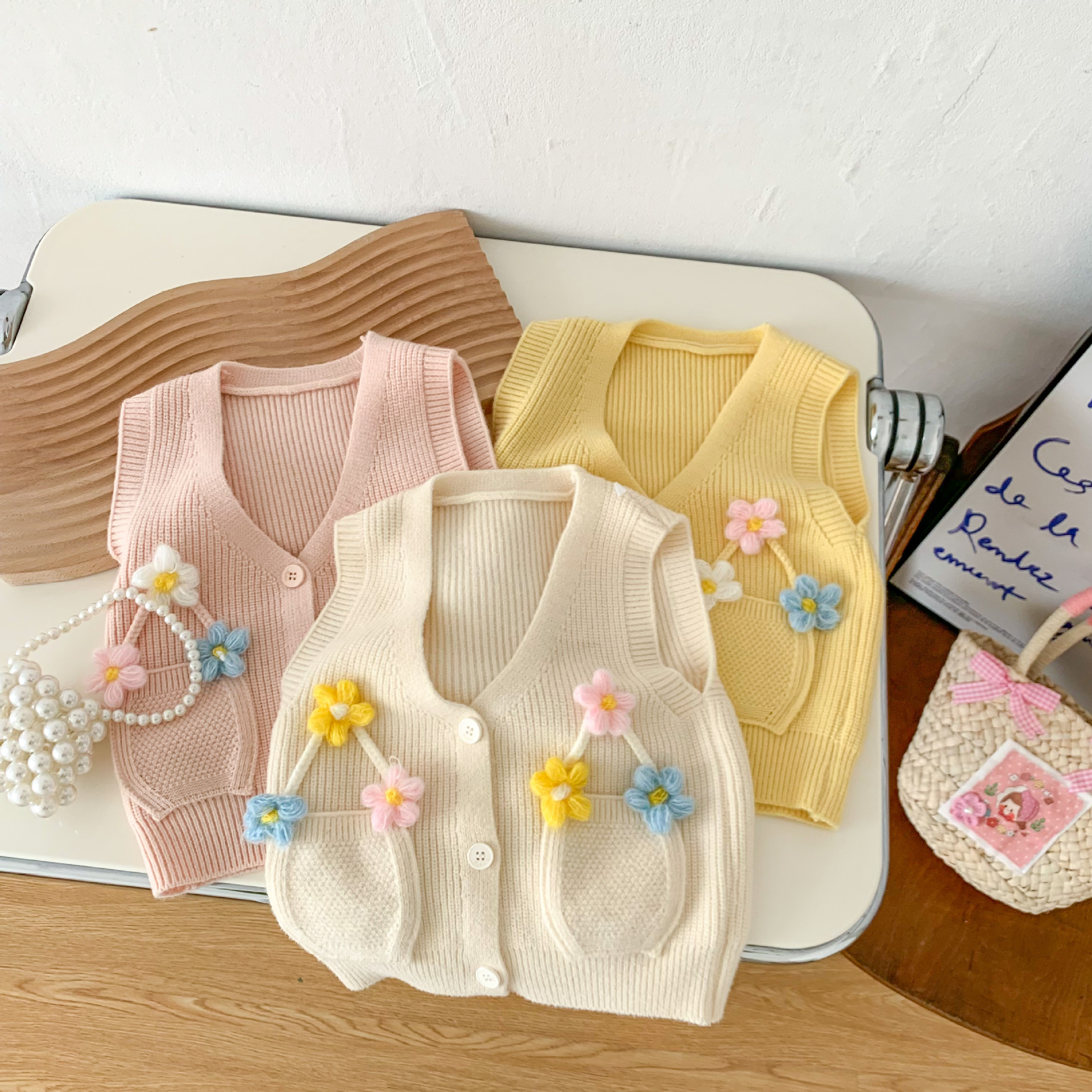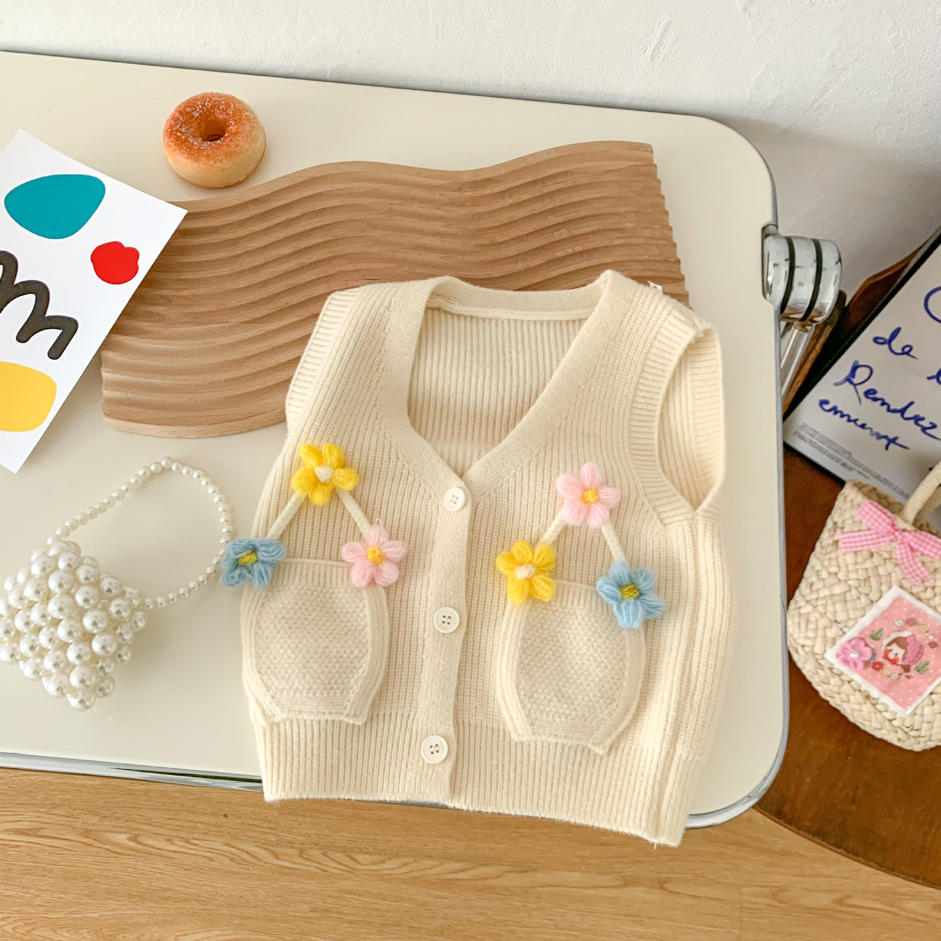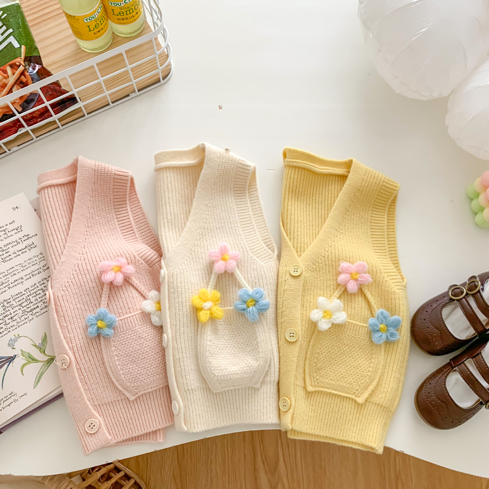 2023 년 봄과 가을 어린이 스웨터 소녀 카디건 만화 니트 조끼 조끼스토어 가기