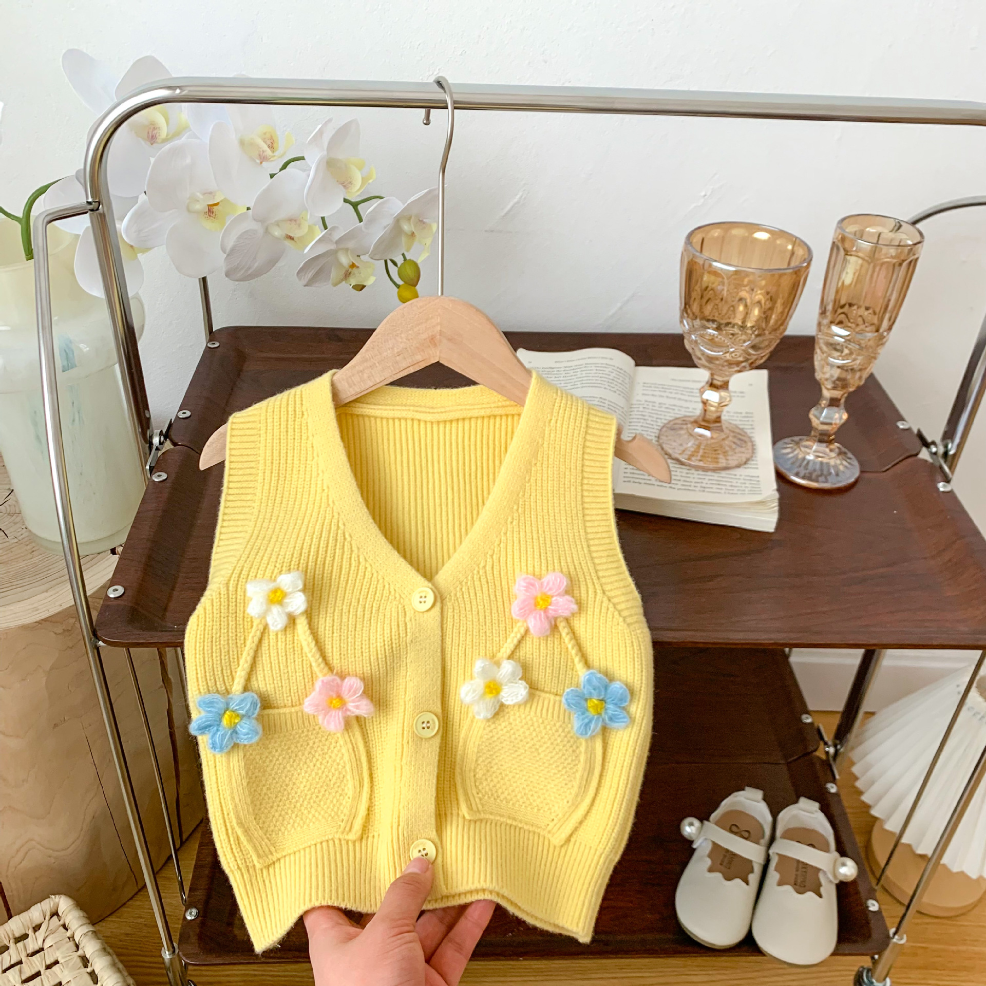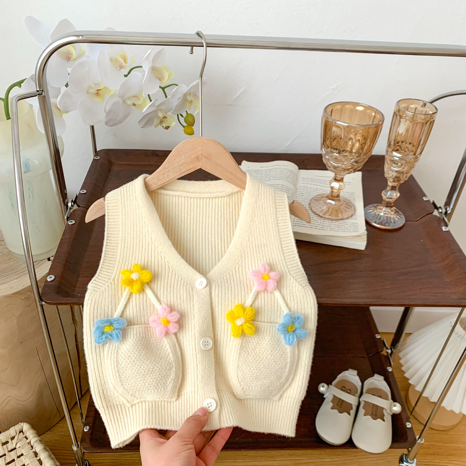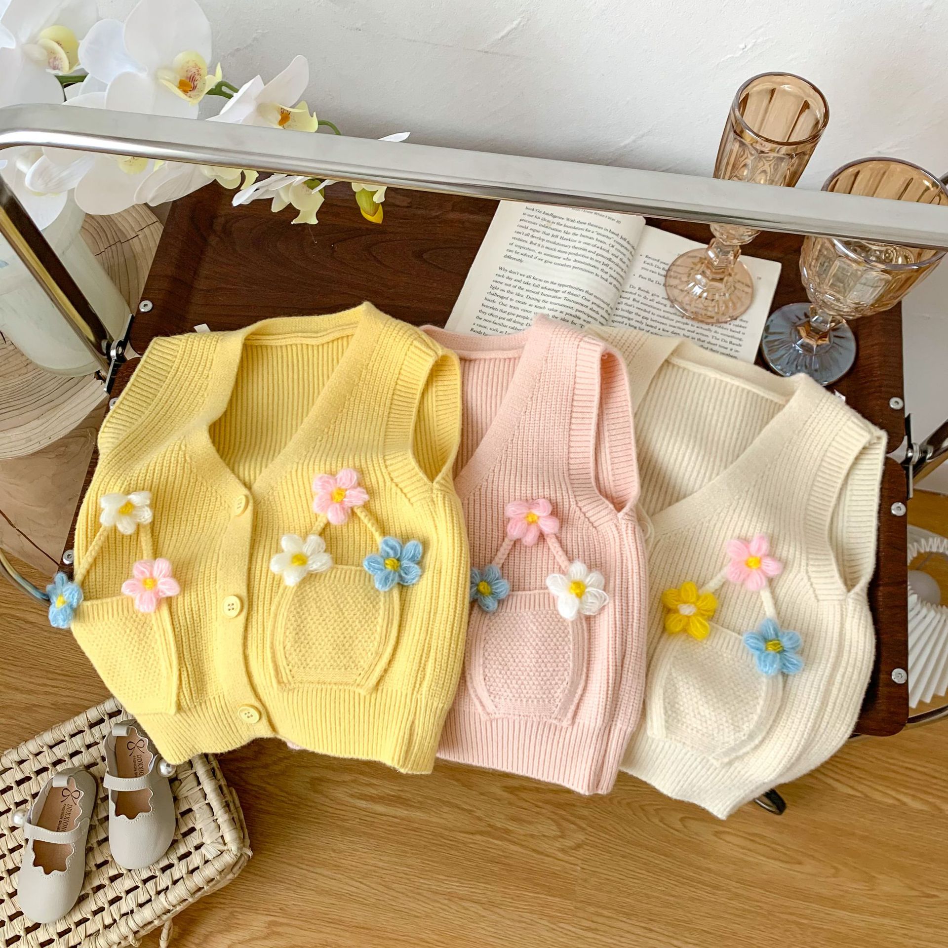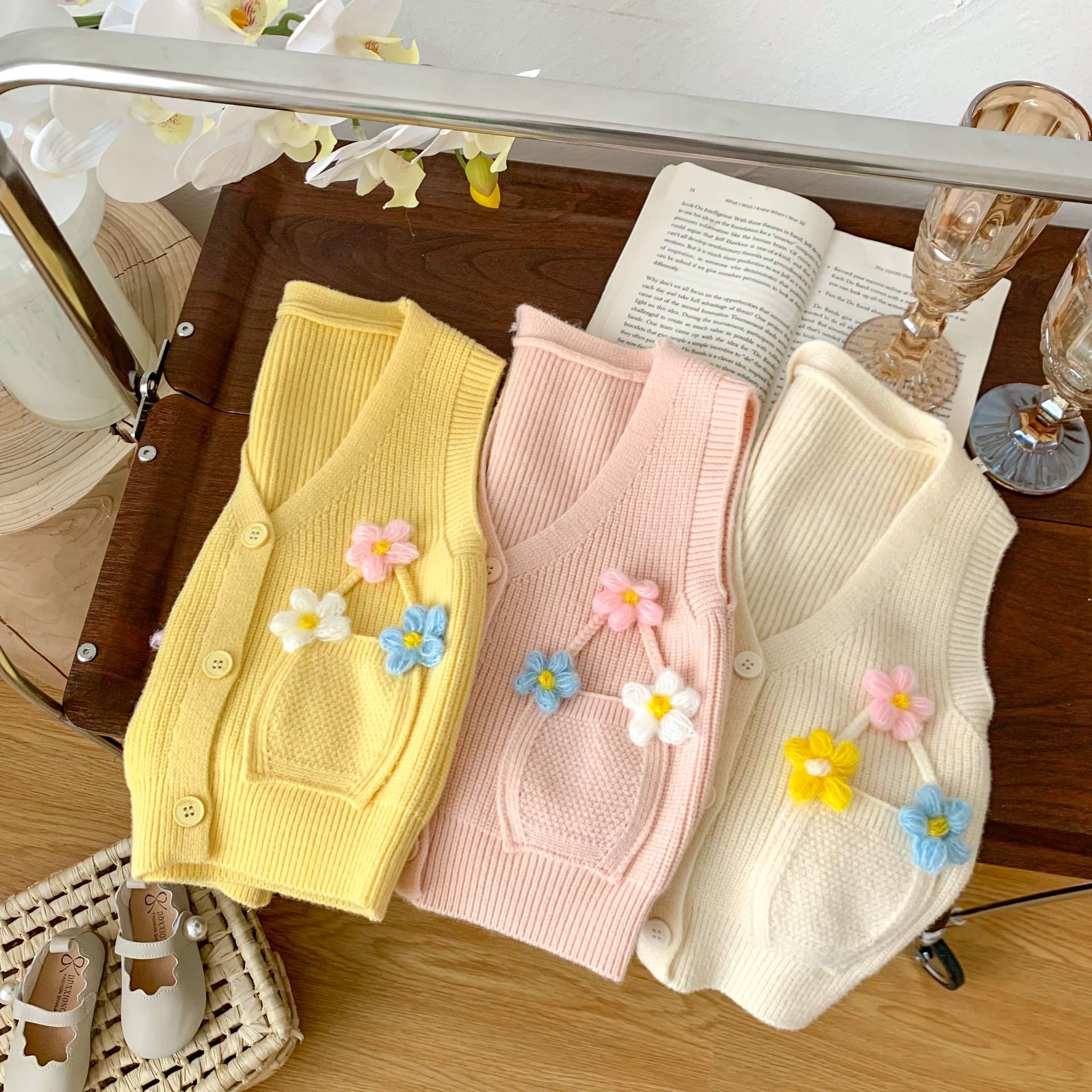 2023 년 봄과 가을 어린이 스웨터 소녀 카디건 만화 니트 조끼 조끼스토어 가기