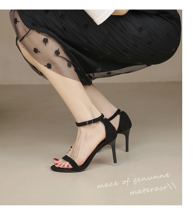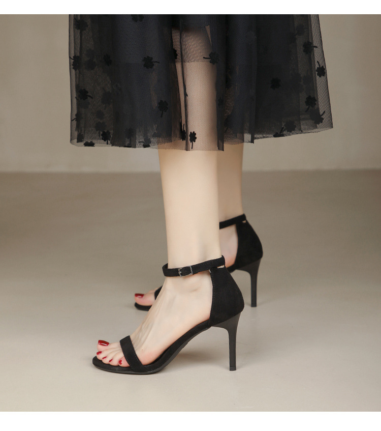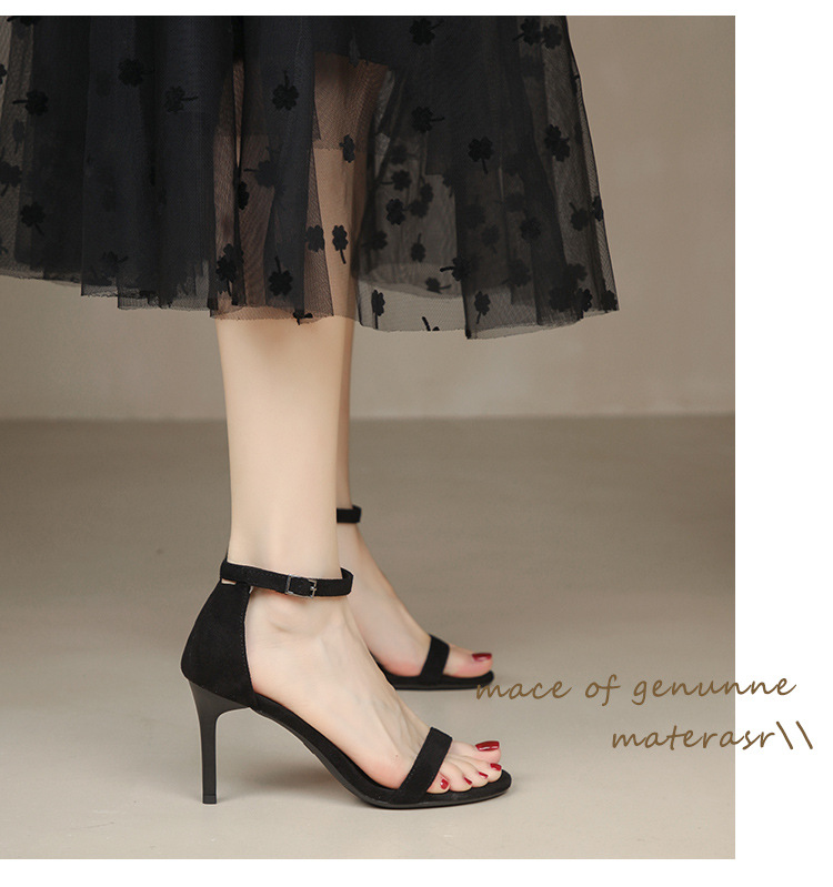 인터넷 인기 여성용 한국 스타일 샌들 2026년 신상 여름 패션 원스트랩 가죽 얇은 굽 섹시한 오픈토 하이힐