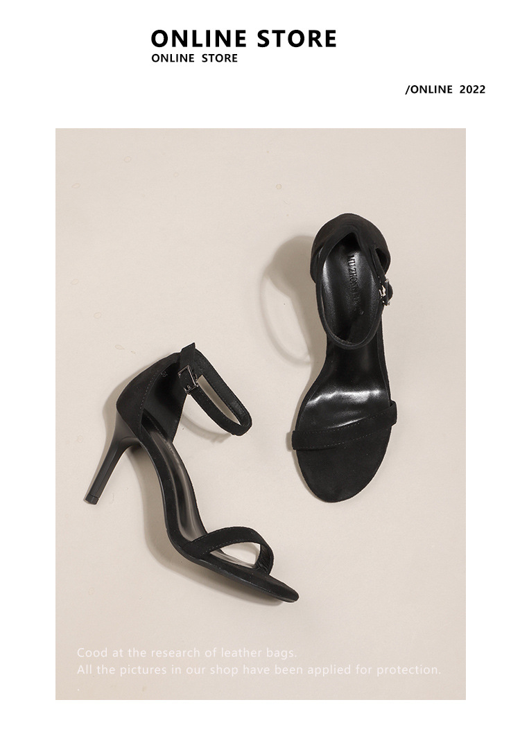 인터넷 인기 여성용 한국 스타일 샌들 2026년 신상 여름 패션 원스트랩 가죽 얇은 굽 섹시한 오픈토 하이힐스토어 가기