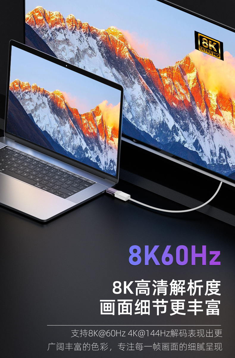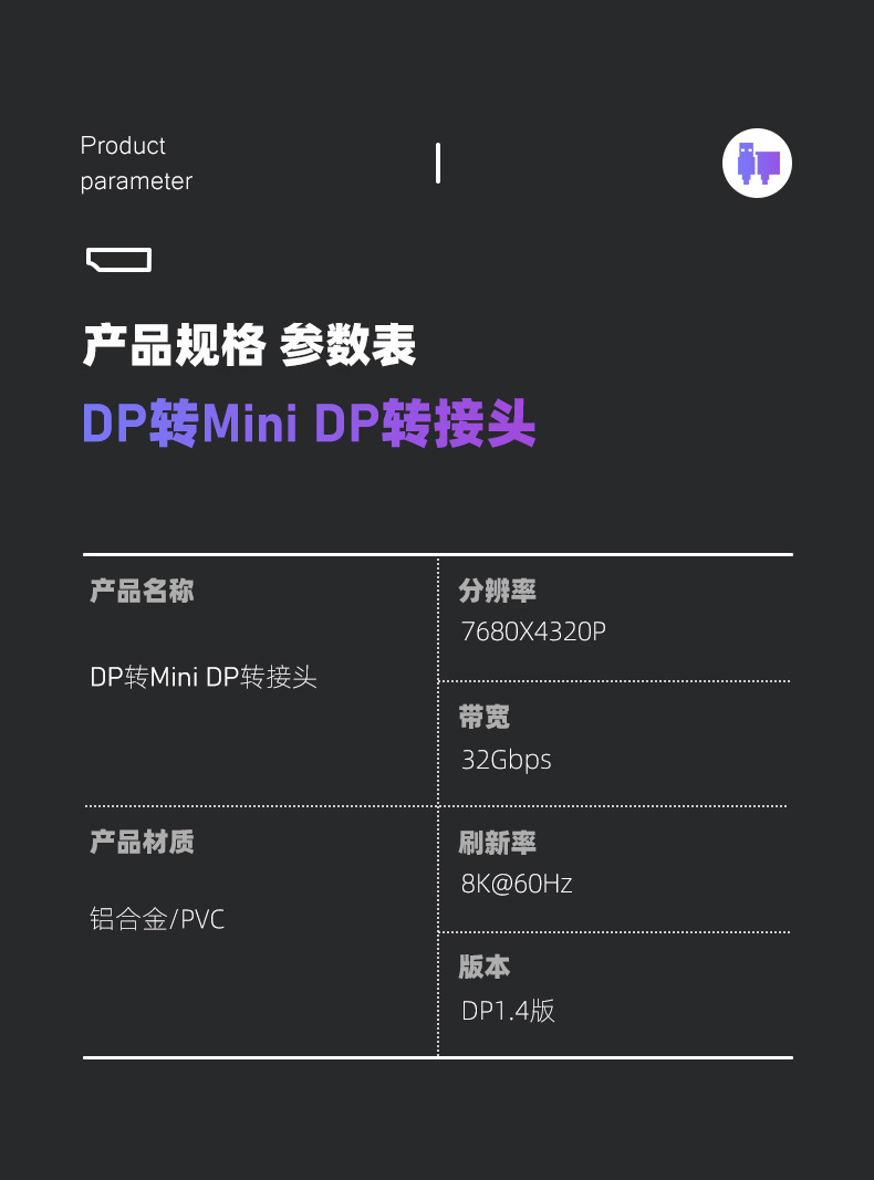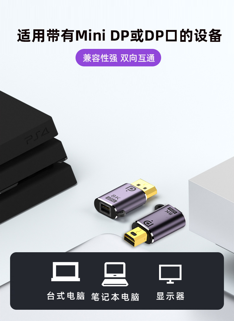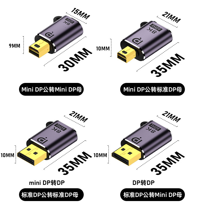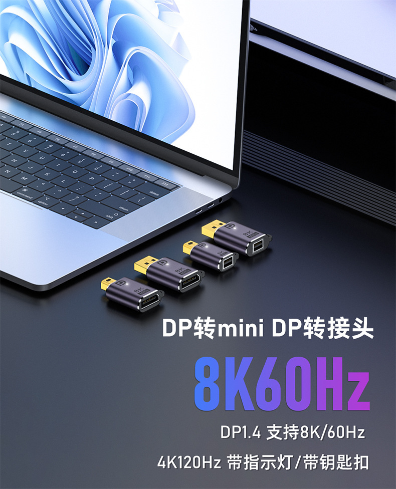 Minidp to dp 어댑터 8K60hz HD 모니터 컴퓨터 노트북 DP1.4 번개 2 어댑터