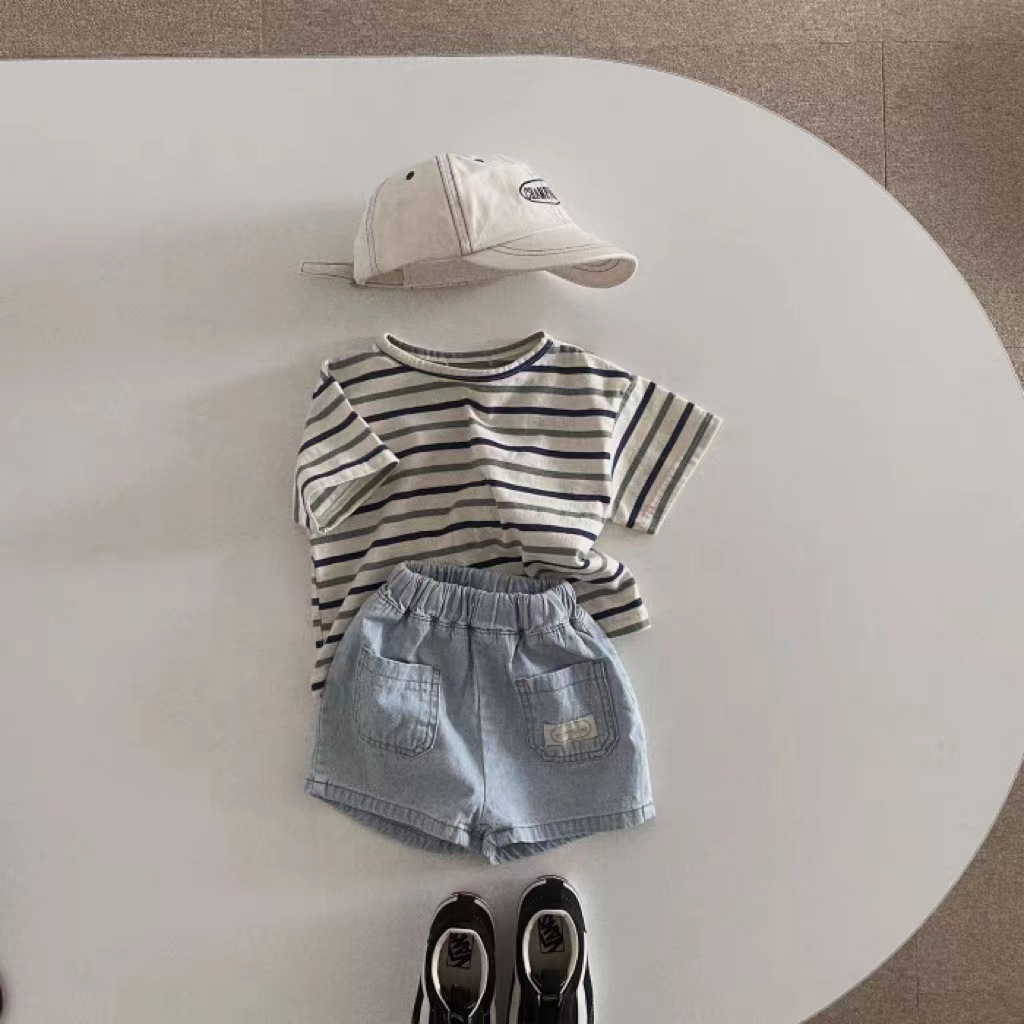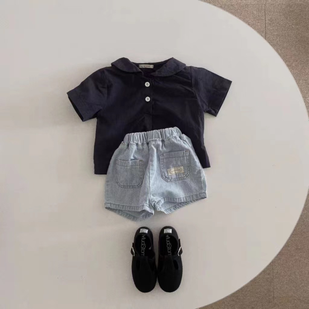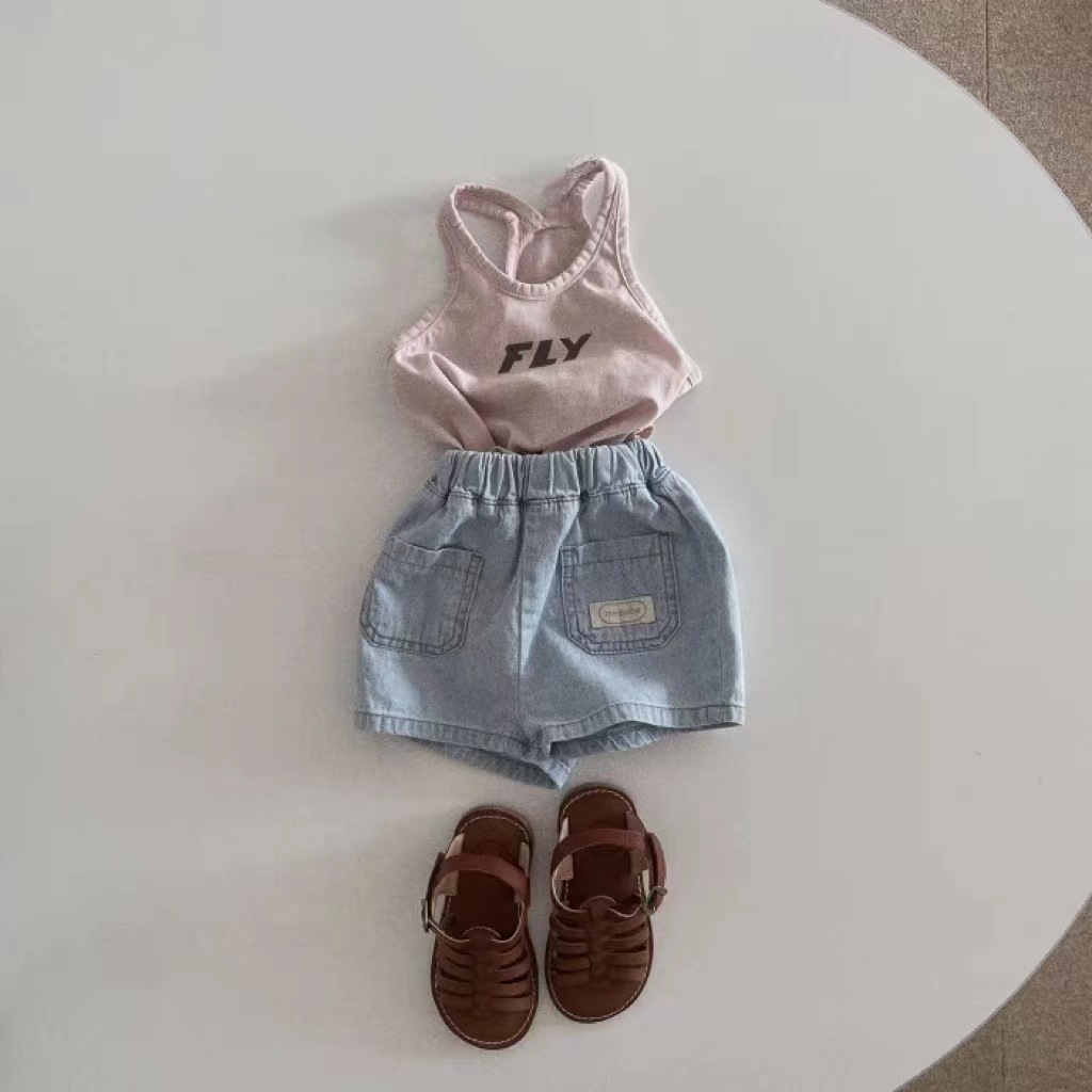 In 아동복 아기 한국어 편지 여름 면 얇은 청바지 빈티지 반바지 아기 아기 유행스토어 가기