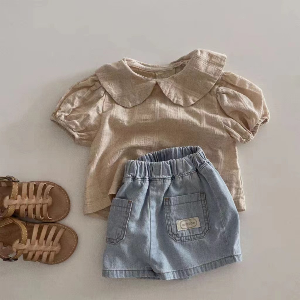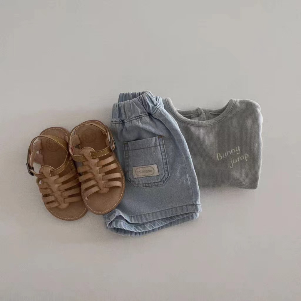 In 아동복 아기 한국어 편지 여름 면 얇은 청바지 빈티지 반바지 아기 아기 유행