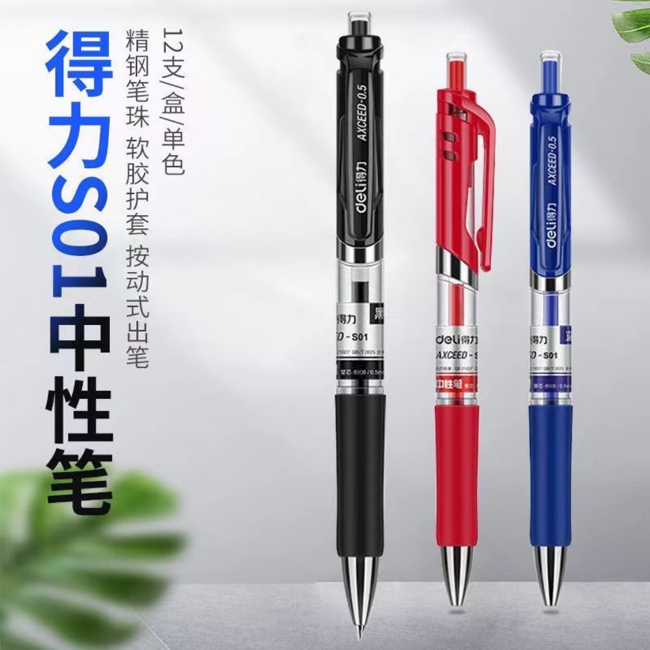 델리 문구 S01 블랙 레드 잉크 블루 블랙 블루 프레스 총알 젤 펜 카본 펜