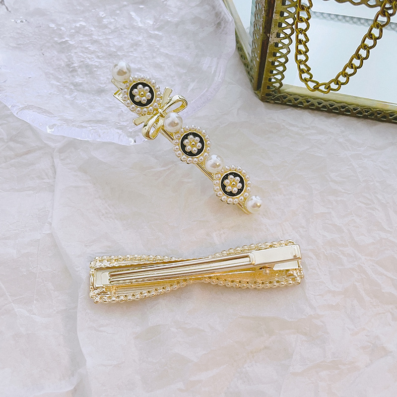 샤넬 스타일 블랙 오일 떨어지는 진주 활 Duckbill 클립 헤어 액세서리 사이드 머리핀 앞머리 여성용 간단한 머리핀스토어 가기