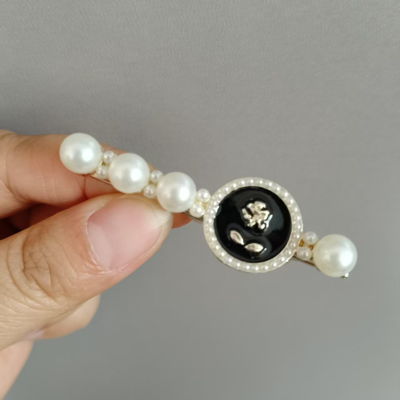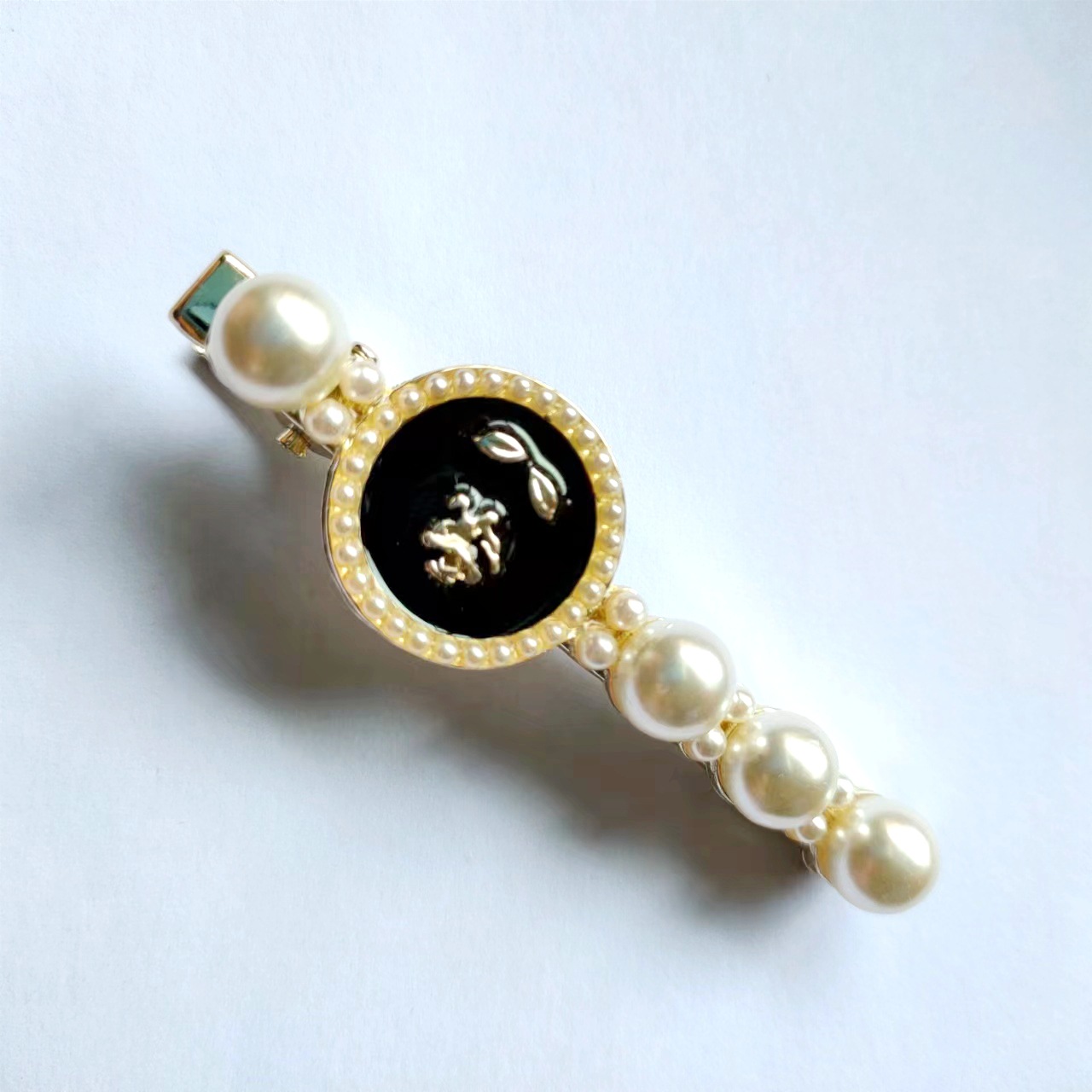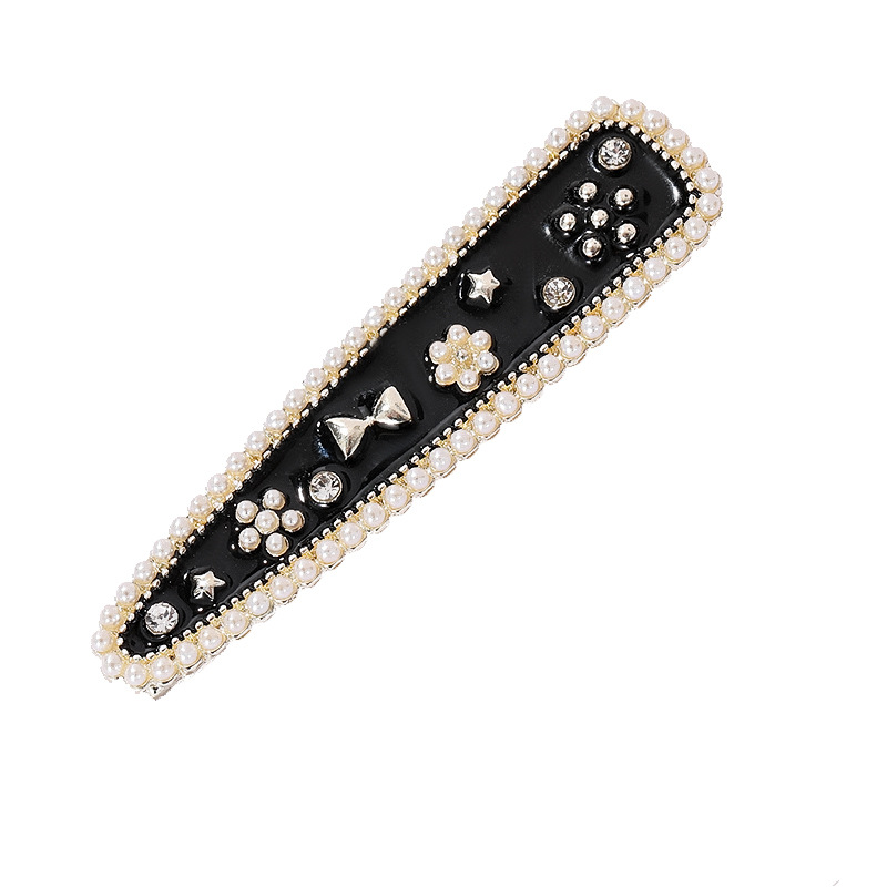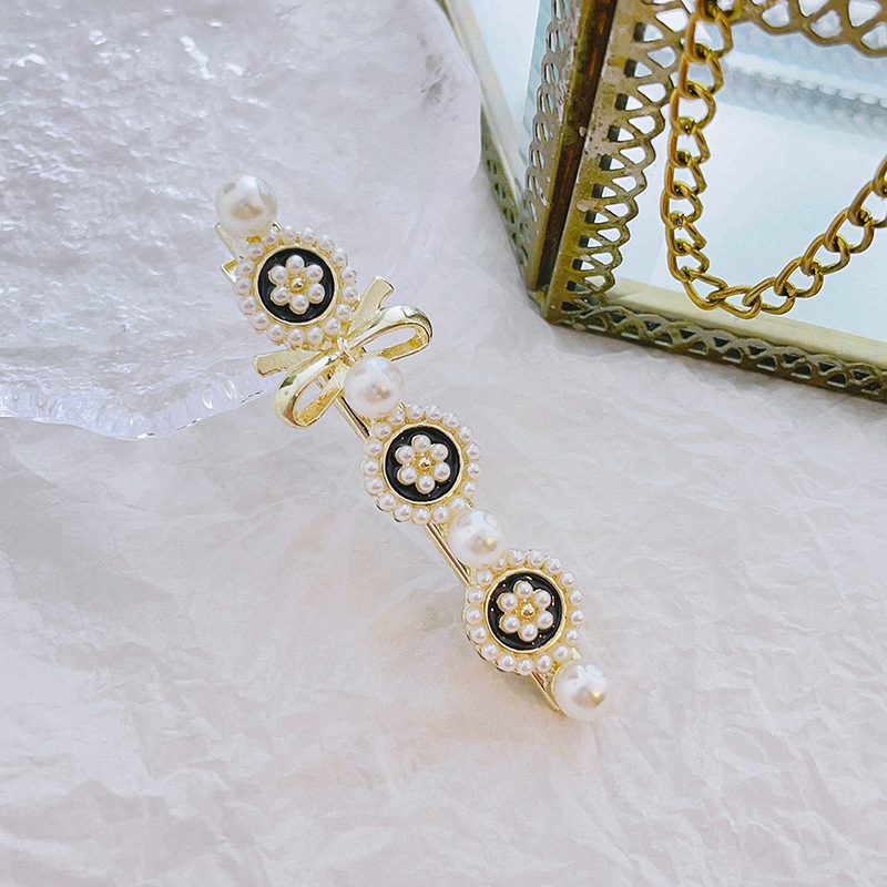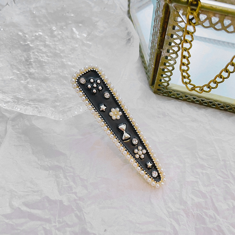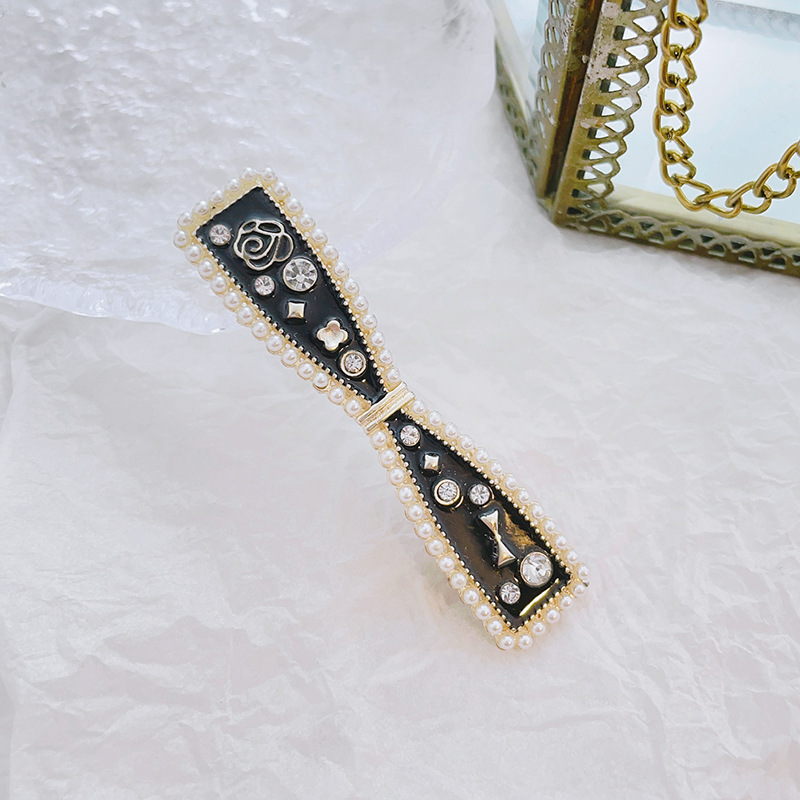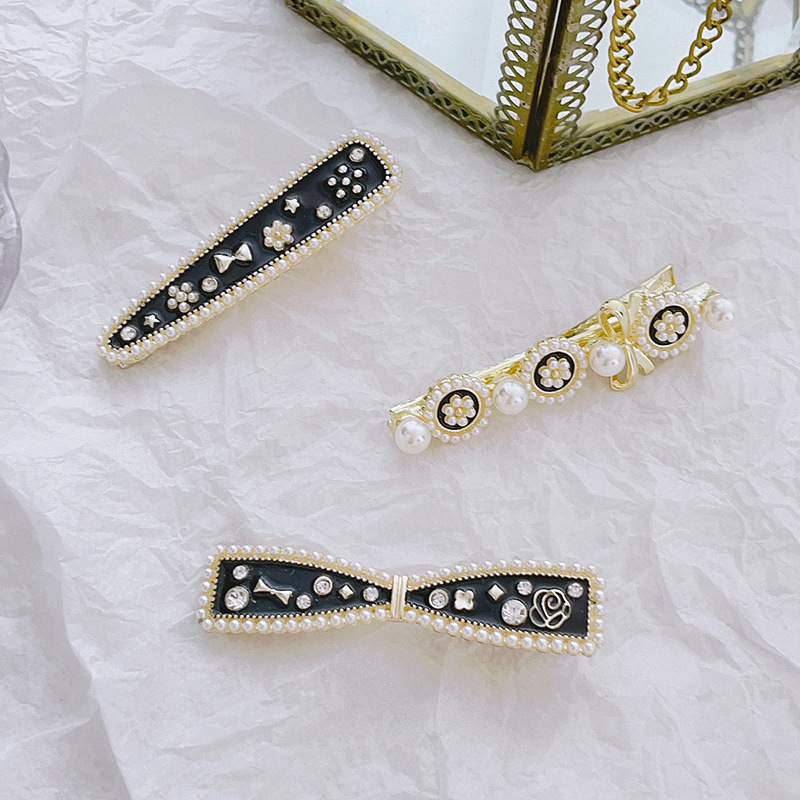 샤넬 스타일 블랙 오일 떨어지는 진주 활 Duckbill 클립 헤어 액세서리 사이드 머리핀 앞머리 여성용 간단한 머리핀