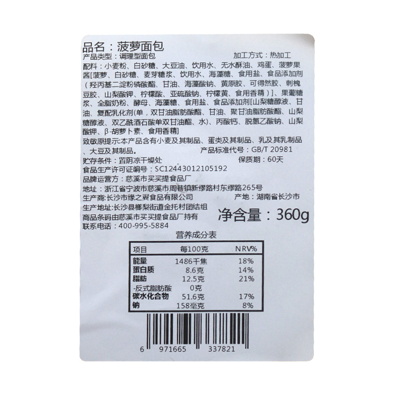 다춘 펑 파인애플 빵 360g 박스형 흑쌀 빵 케이크 간식 식사 다풍 식품 10 박스/박스스토어 가기