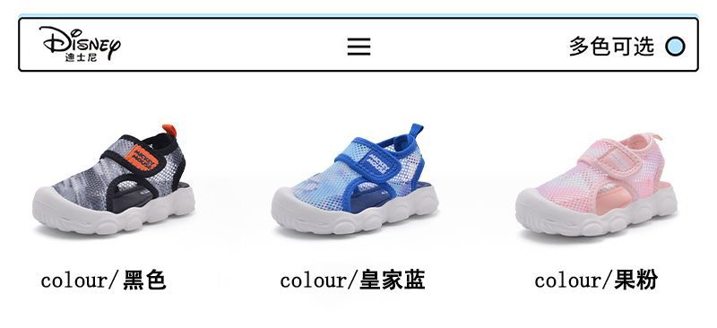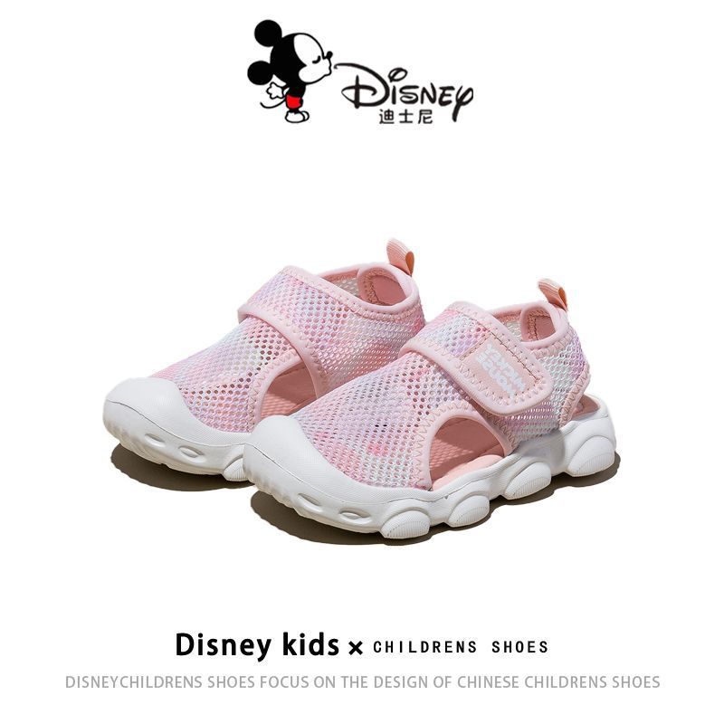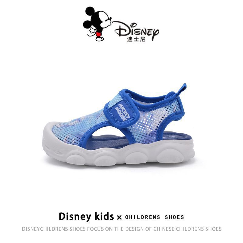디즈니 슈퍼 라이트 미끄럼 방지 어린이 샌들 2023 여름 새로운 소년 소녀 샌들 슈퍼 소프트 벨크로 메쉬 신발