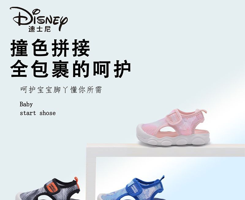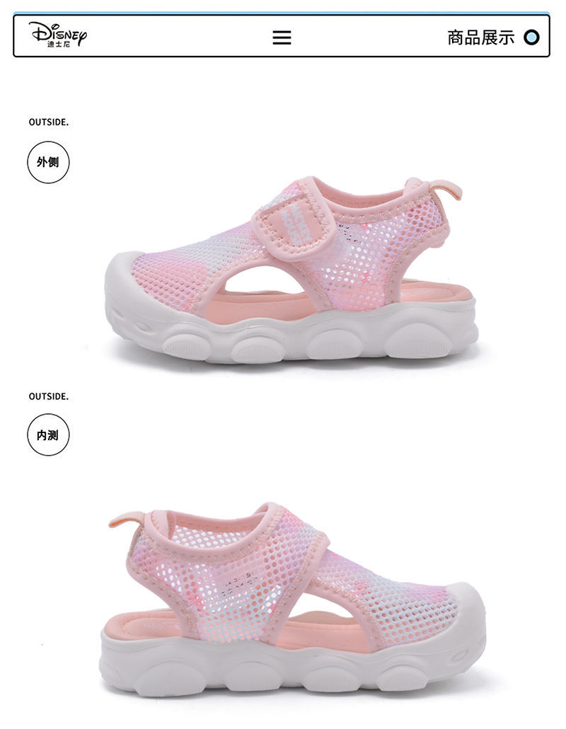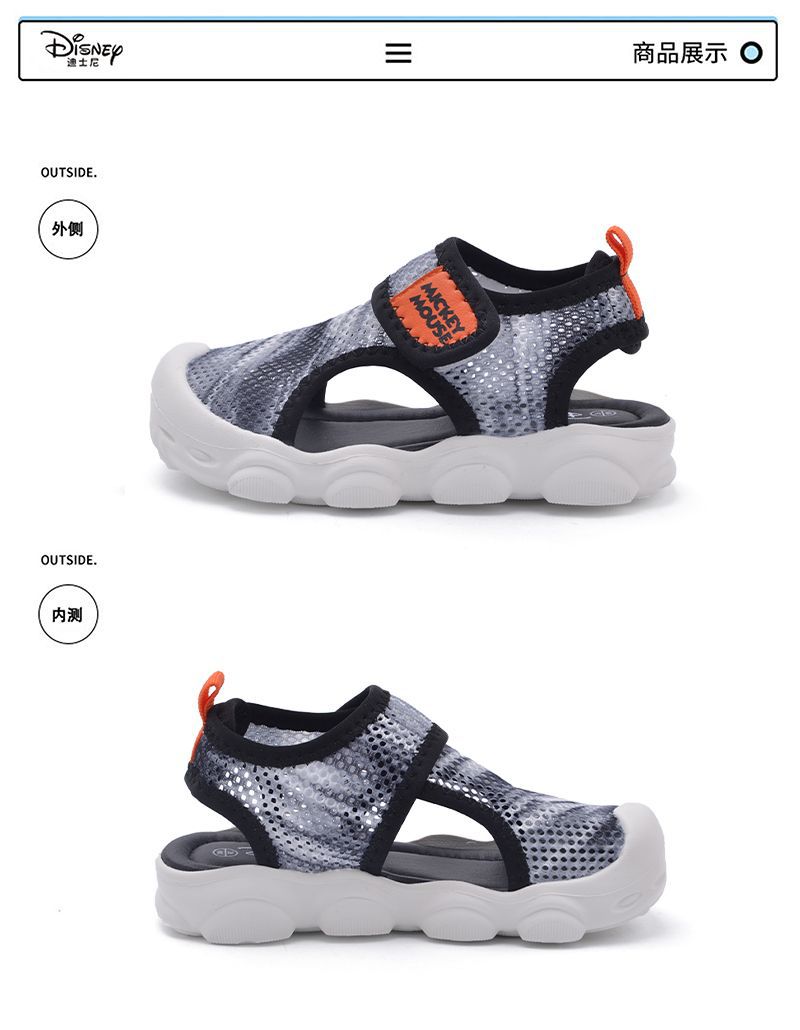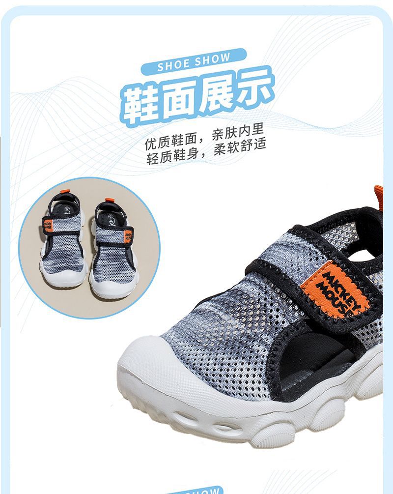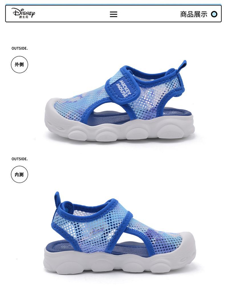 디즈니 슈퍼 라이트 미끄럼 방지 어린이 샌들 2023 여름 새로운 소년 소녀 샌들 슈퍼 소프트 벨크로 메쉬 신발스토어 가기
