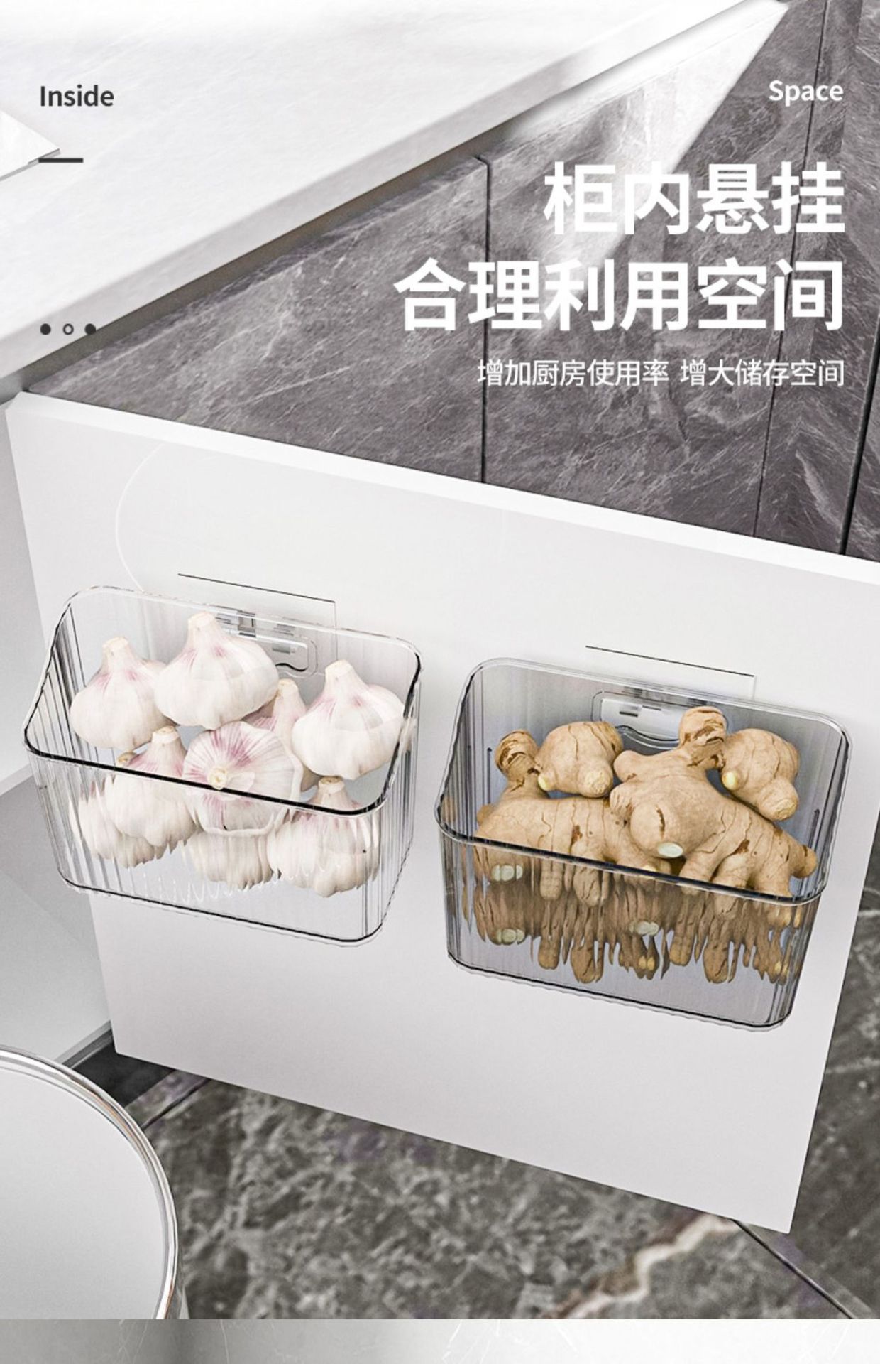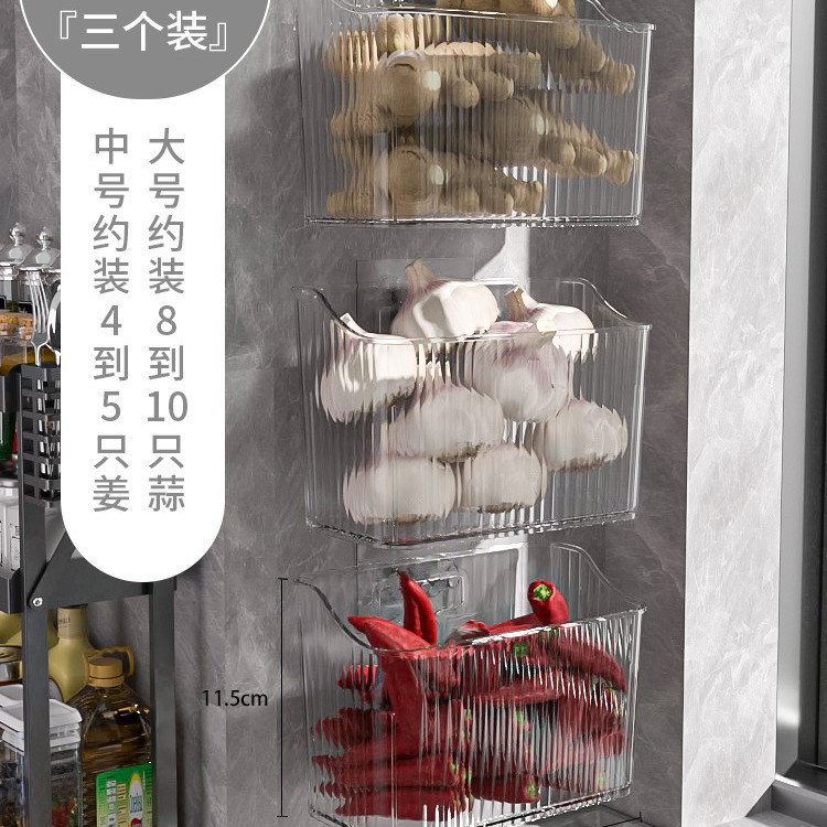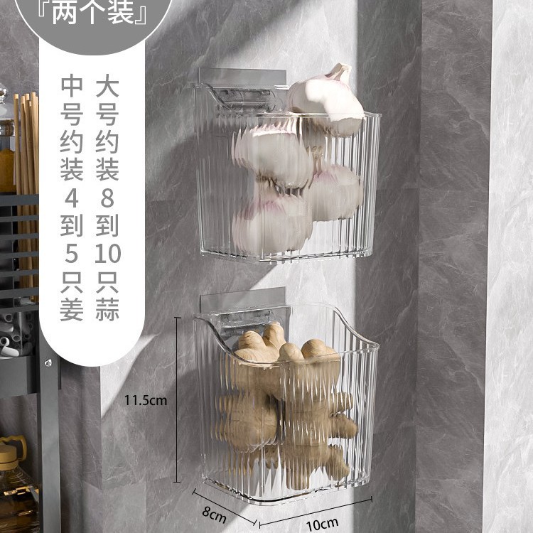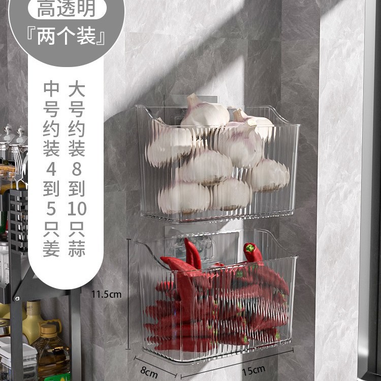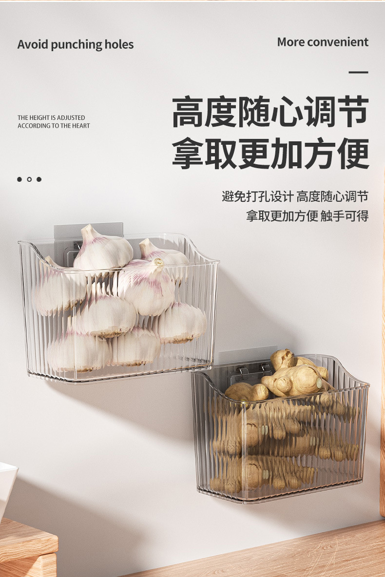 주방 벽걸이 보관함 생강 마늘 양파 보관함 조미료 용품 펀치 프리 벽걸이 바구니 보관함