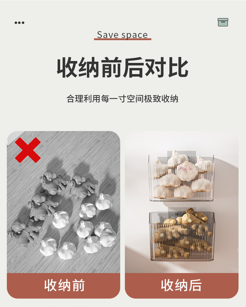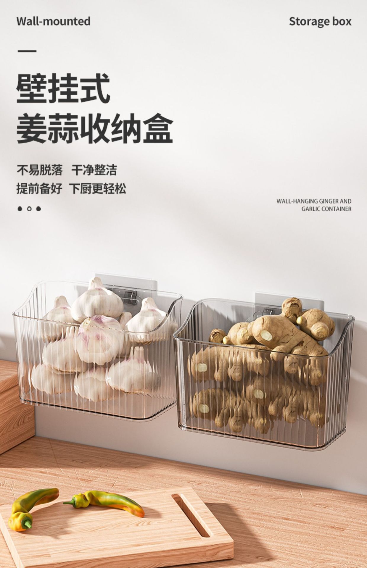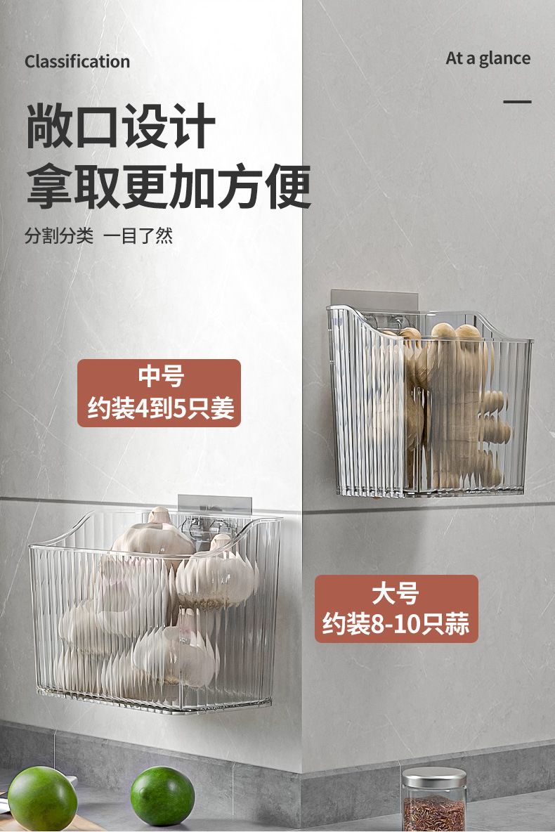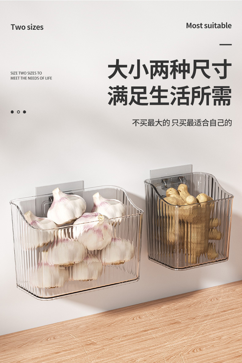 주방 벽걸이 보관함 생강 마늘 양파 보관함 조미료 용품 펀치 프리 벽걸이 바구니 보관함