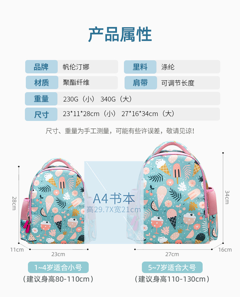 유치원생 척추보호 책가방 어린이 백팩 휴대용 가볍고 귀여운 여아용 봄가을 초등학생 백팩