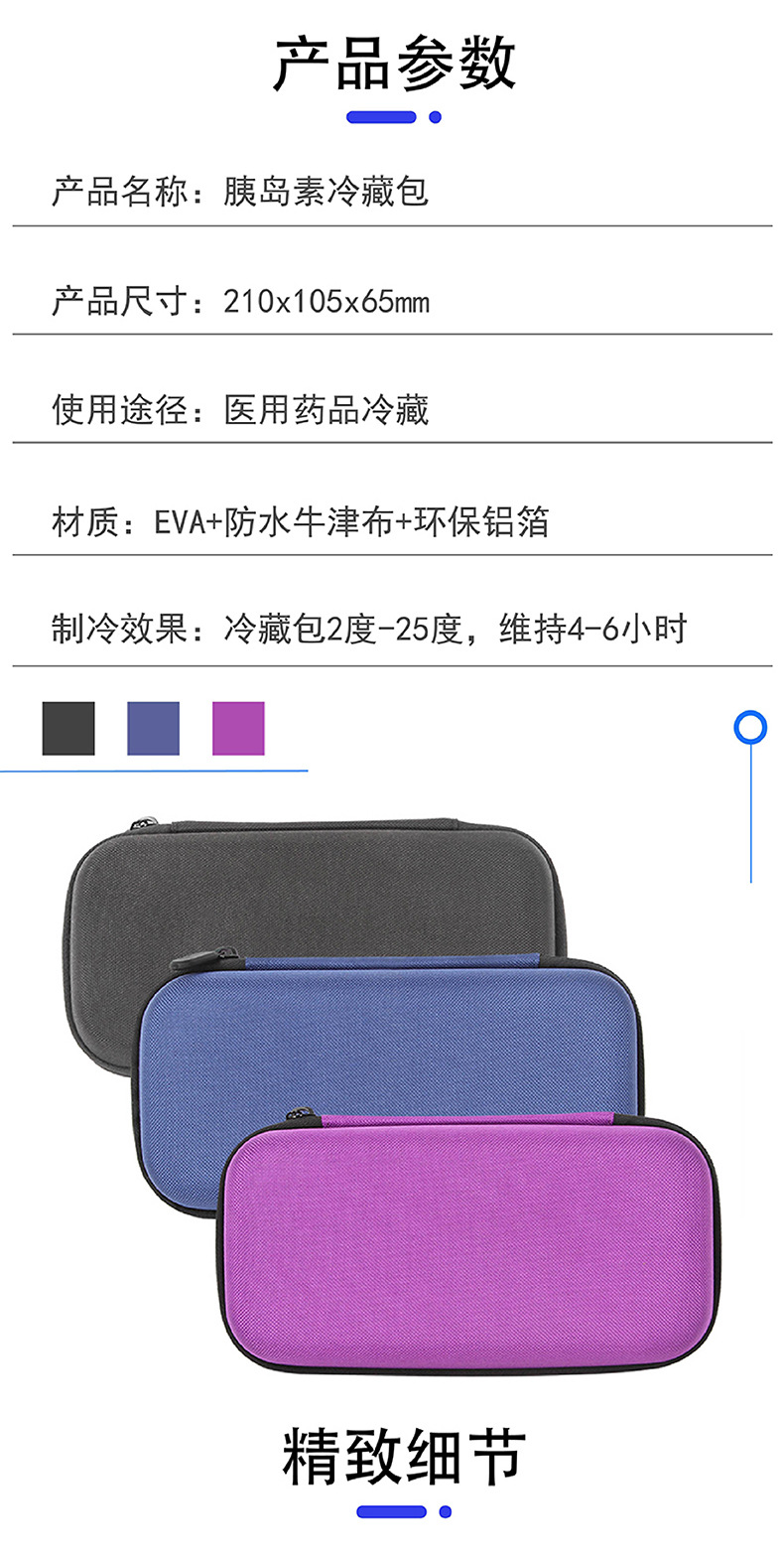 맞춤형 인슐린 냉장 박스 2-8도 휴대용 여행용 보온 약품 냉장 가방 EVA 인슐린 가방