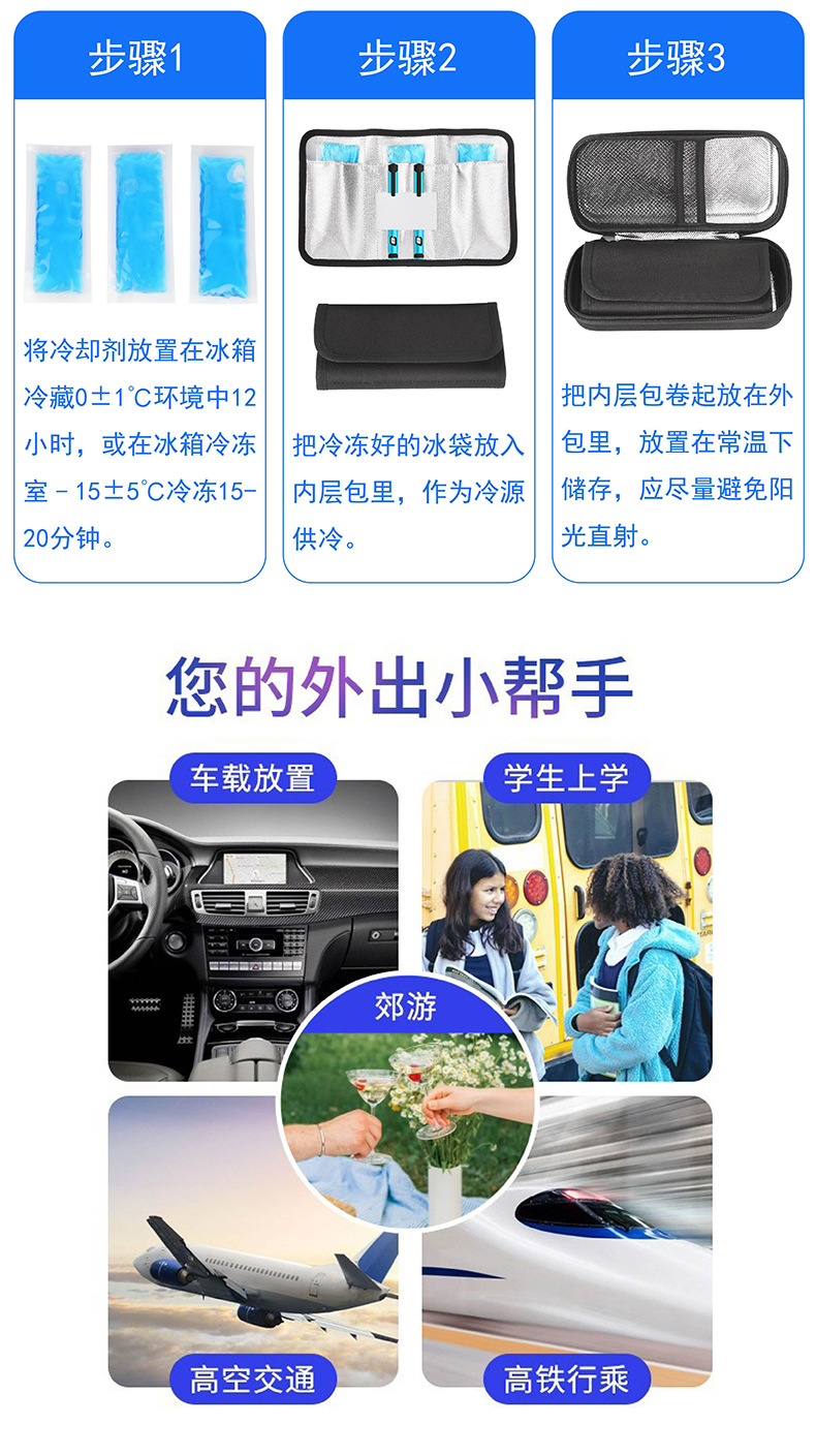 맞춤형 인슐린 냉장 박스 2-8도 휴대용 여행용 보온 약품 냉장 가방 EVA 인슐린 가방스토어 가기