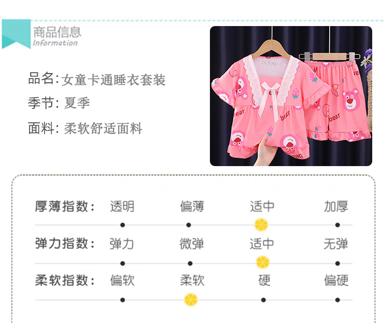 어린이 잠옷 여름 반팔 얇은 레이스 칼라 달콤한 만화 어린이 소녀 아기 중간 및 큰 어린이 가정 옷 세트스토어 가기