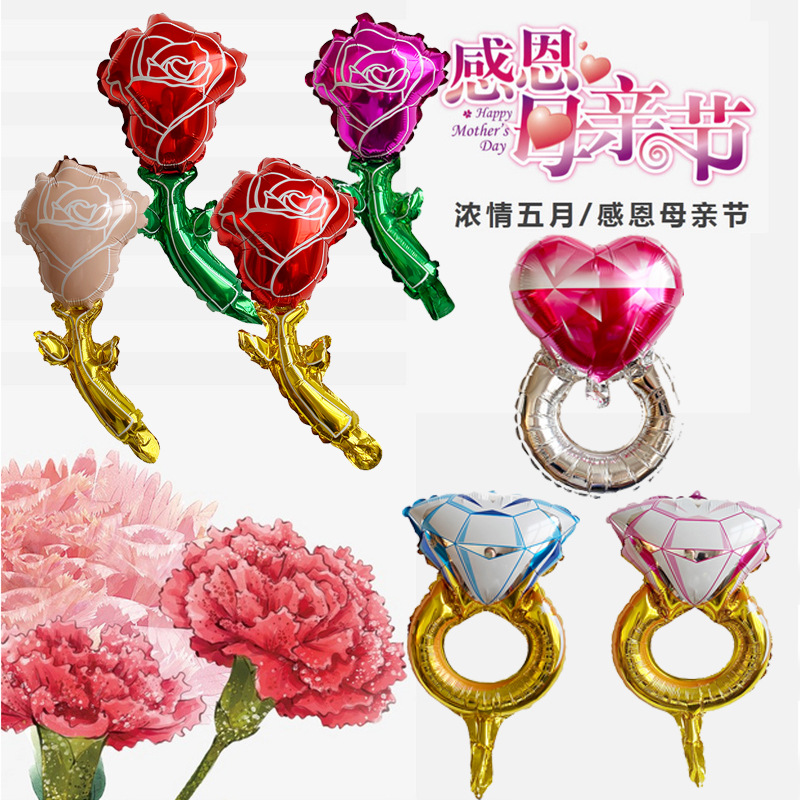 새로운 발렌타인데이 및 어머니날 미니 장미 알루미늄 풍선 유치원 및 초등학교 어머니날 선물