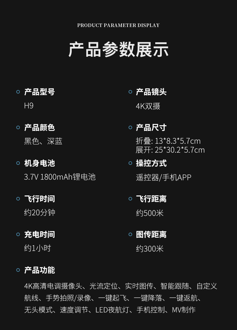 국경 간 H9 브러시리스 모터 드론 HD 4K 항공 사진 광학 흐름 위치 폴딩 항공기 듀얼 카메라 원격 제어 항공기스토어 가기