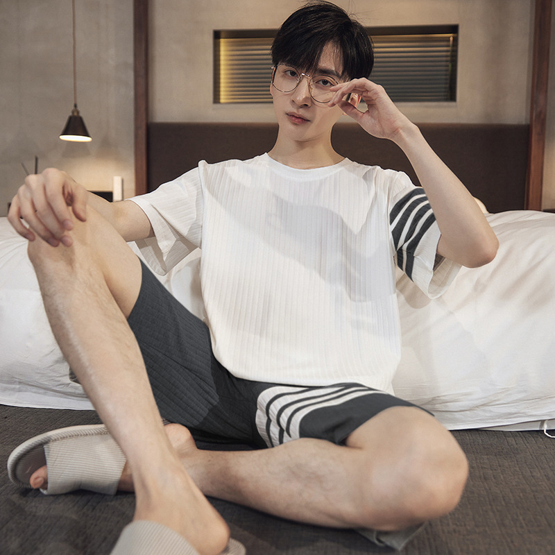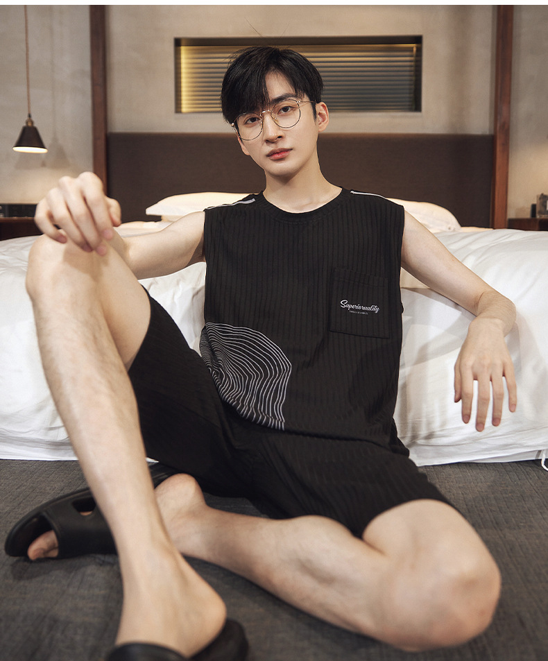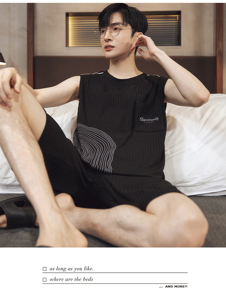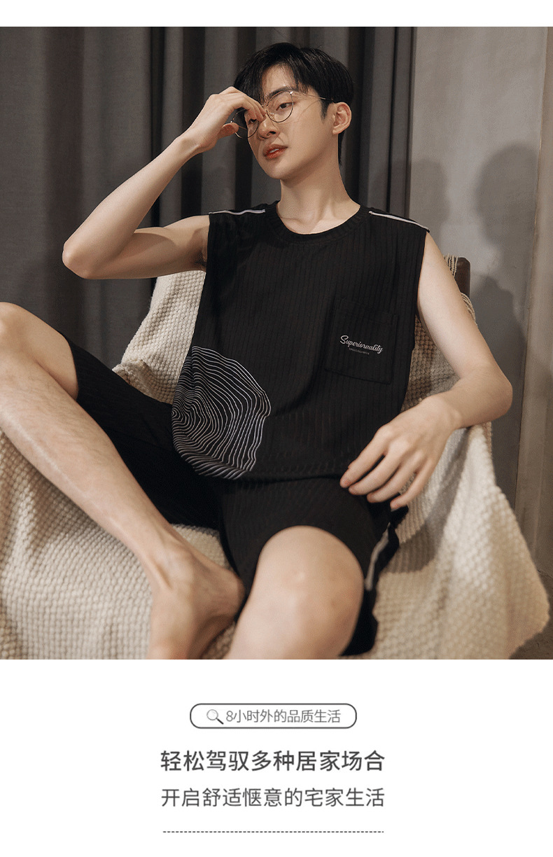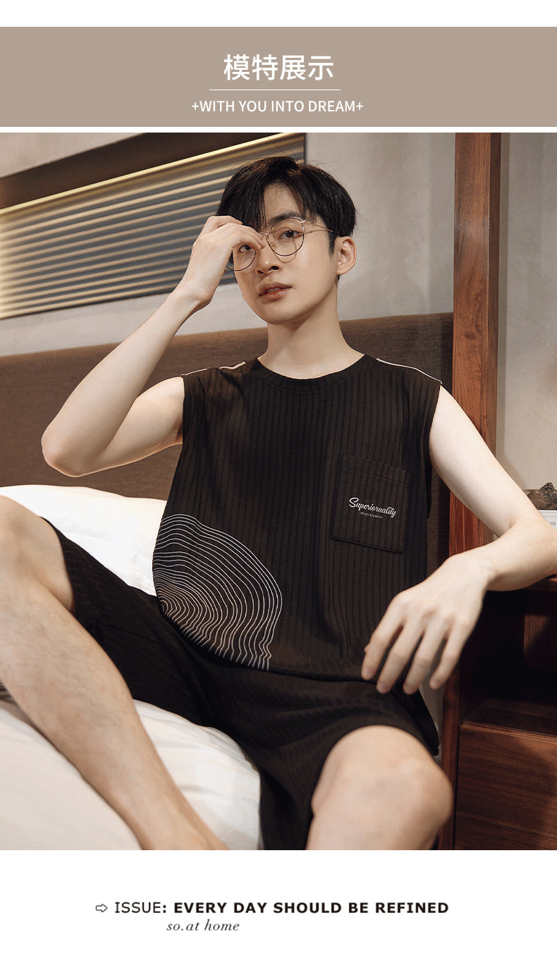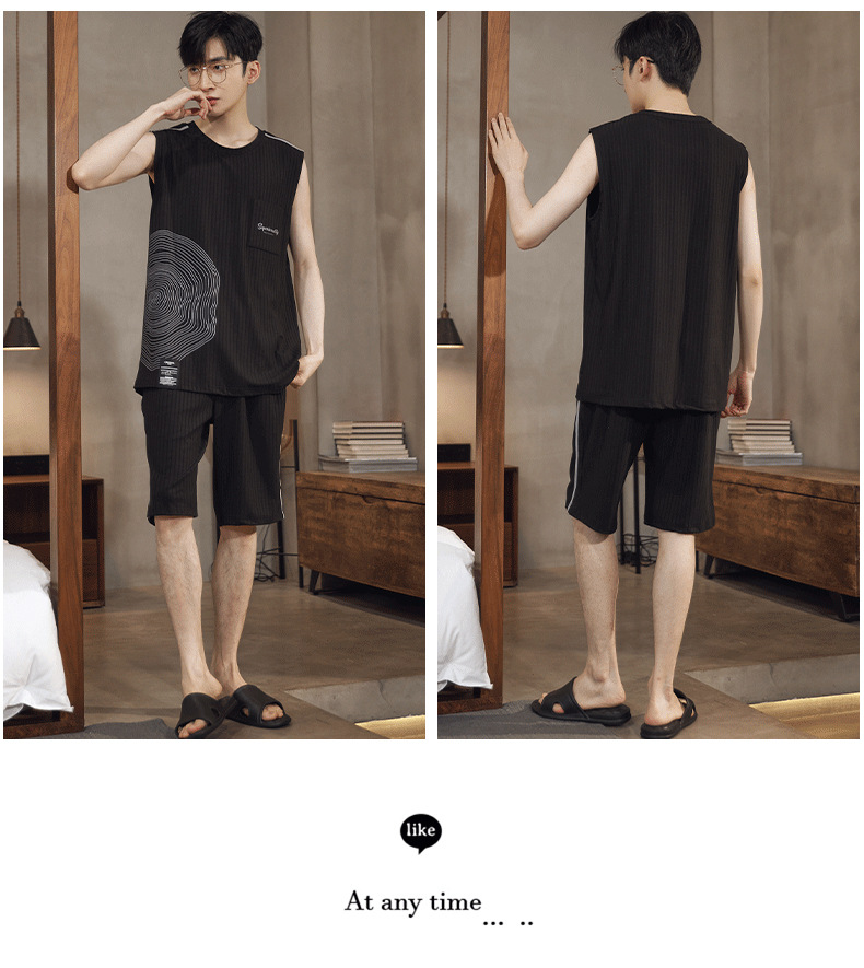 모달 쿨 느낌 잠옷 남자 여름 조끼 반바지 여름 얇은 캐주얼 솔리드 컬러 세트스토어 가기