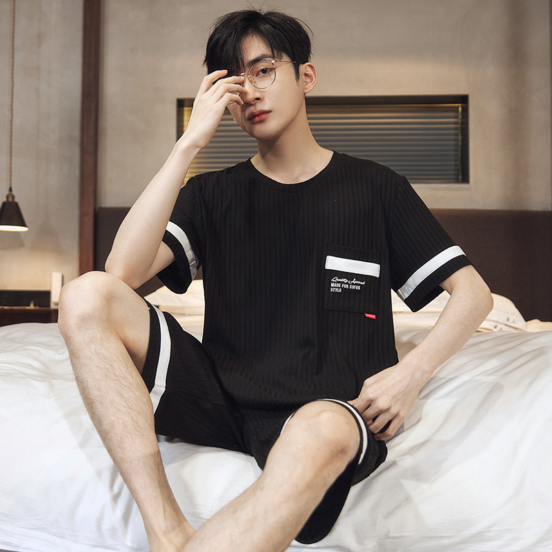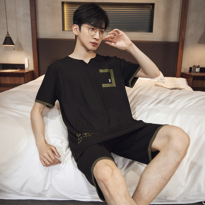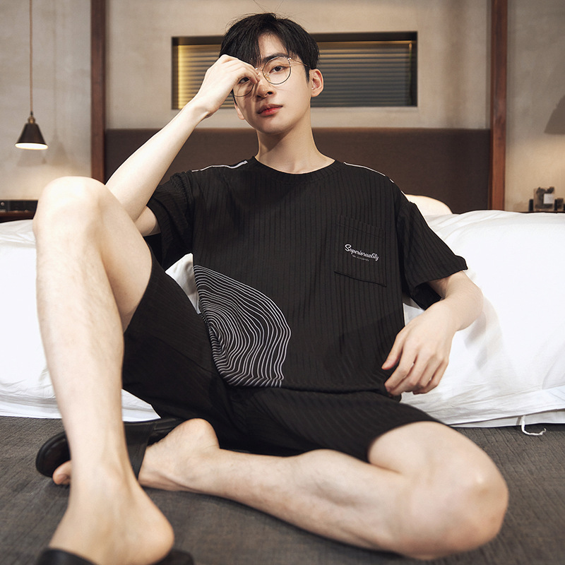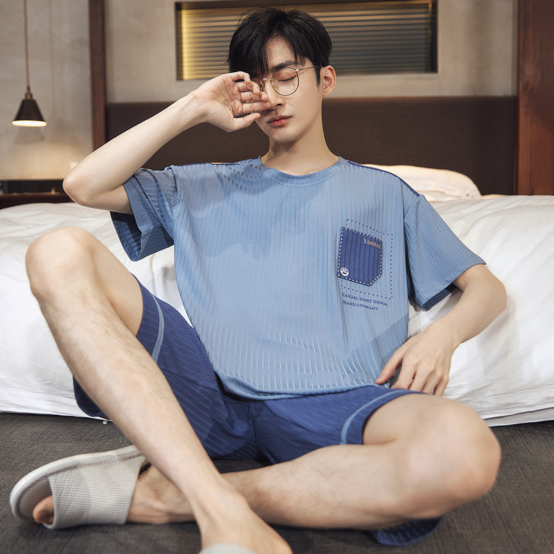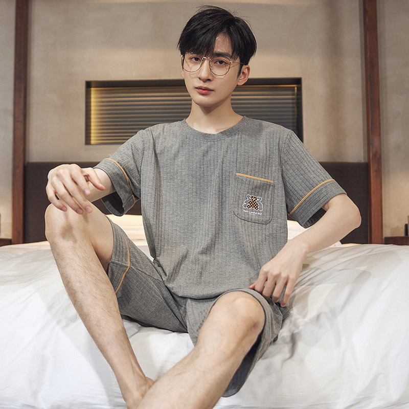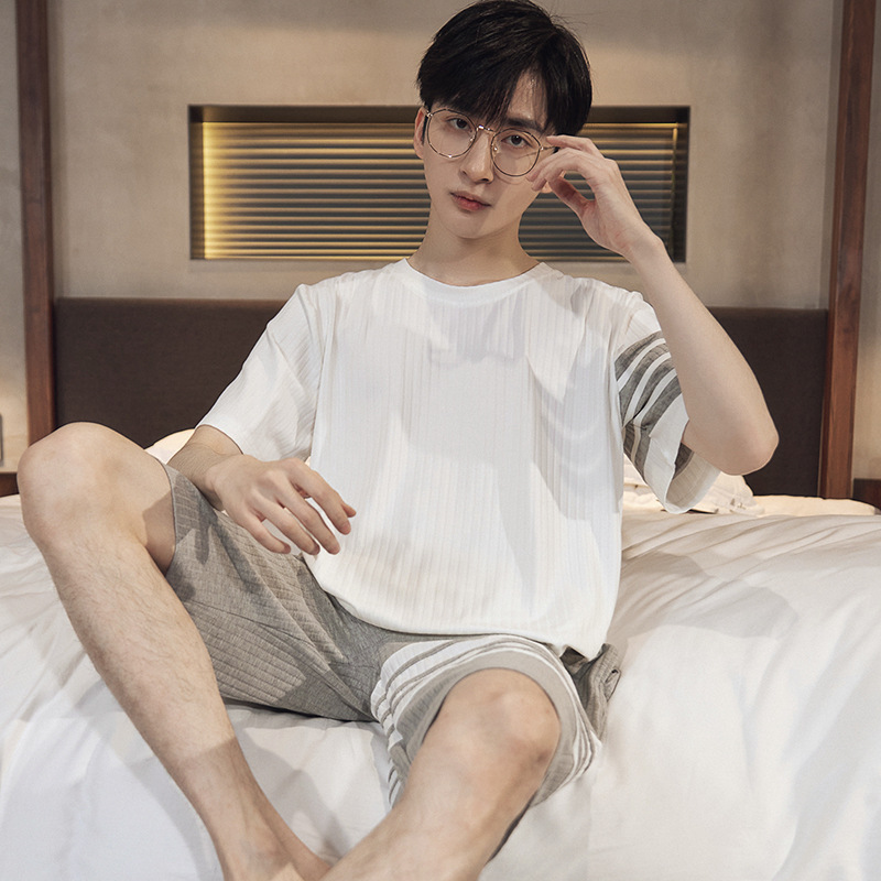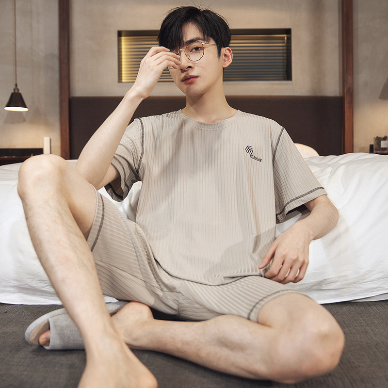 모달 쿨 느낌 잠옷 남자 여름 조끼 반바지 여름 얇은 캐주얼 솔리드 컬러 세트스토어 가기