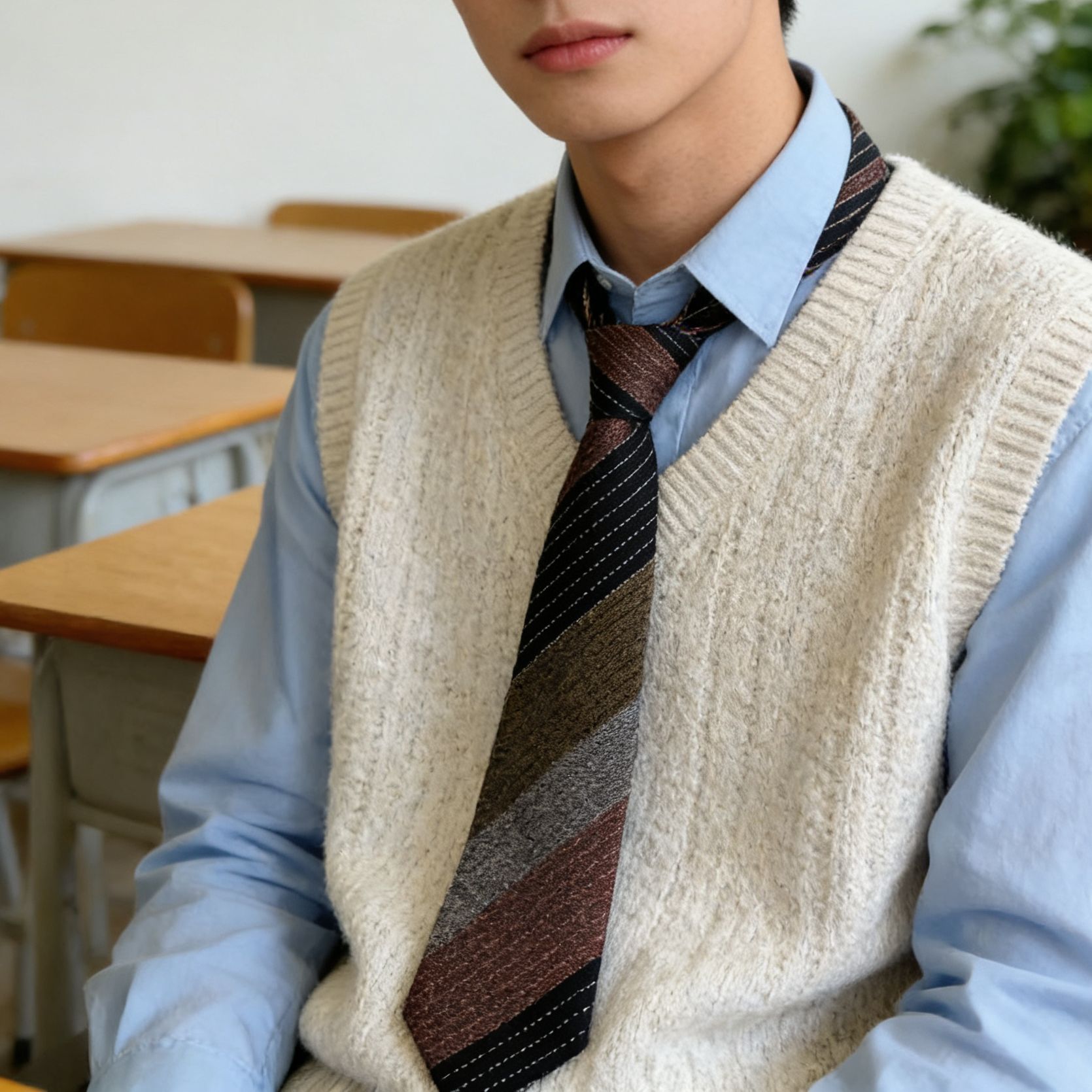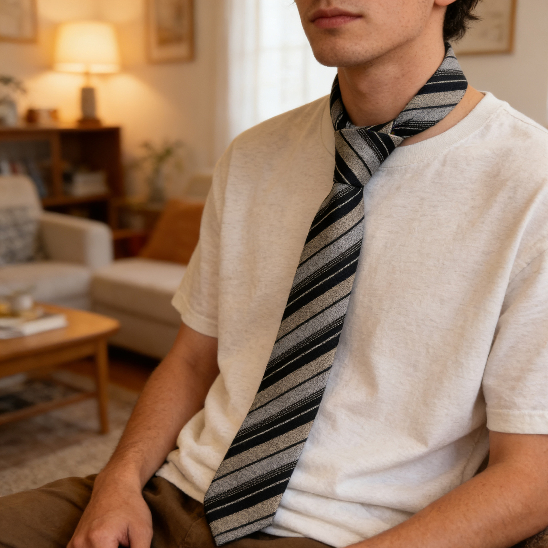 • 검정 & 브라운 스트라이프 면마 핸드메이드 넥타이