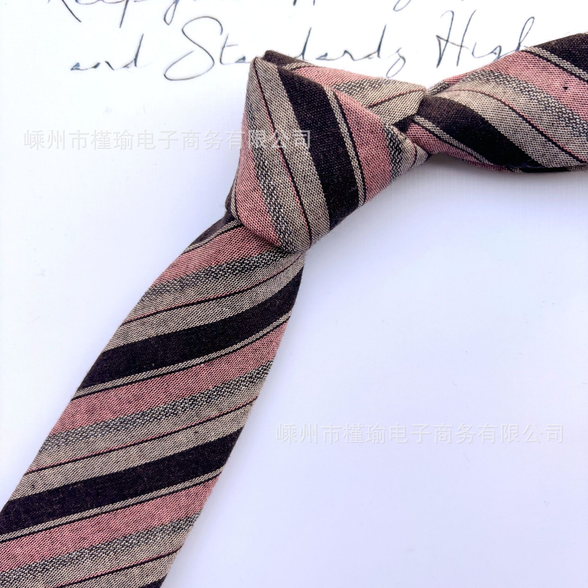 다크 브라운 카키 린넨 코튼 다크 레드 블랙 매트 격자 무늬 복고풍 캐주얼 영국 일본어 7cm 틈새 넥타이