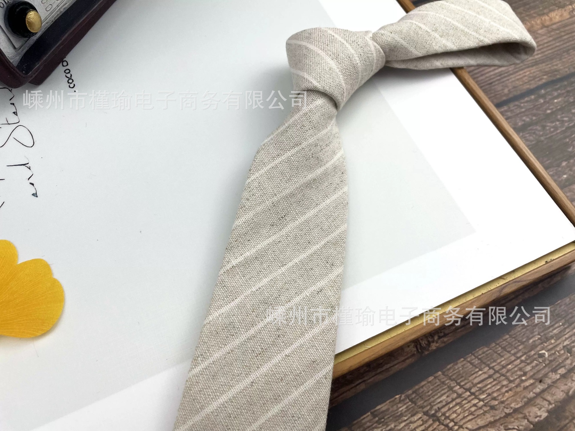 • 그레이 카페 화이트 페어 코튼 리넨 타이 6.5CM