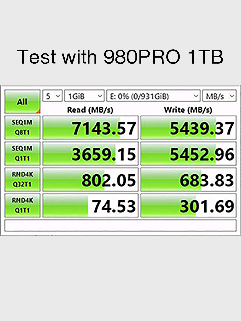 With the channel of PCI-E 4.0 X4, the speed will be enhanced up to 64 Gbps, 5000+ MB/s random Read and 4500+ MB/s Write (Max), improved computer performance, backward compatible with PCIe 1.0 2.0 3.0