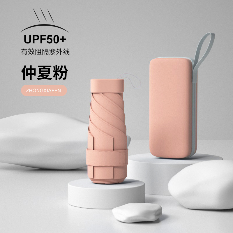 플랫 5 중 우산 울트라 라이트 미니 휴대용 캡슐 우산 UV 보호 양산 우산 이중 사용 포켓 우산 인쇄 로고