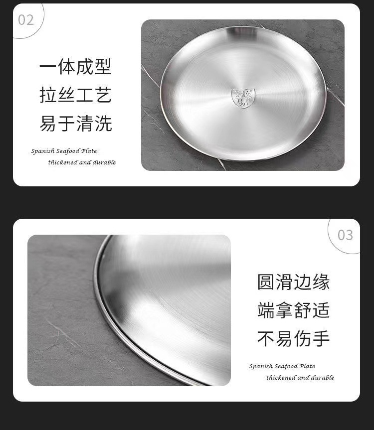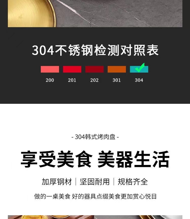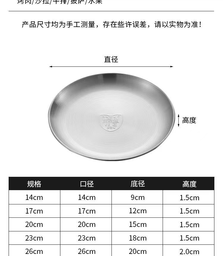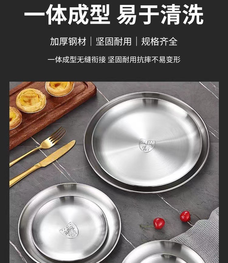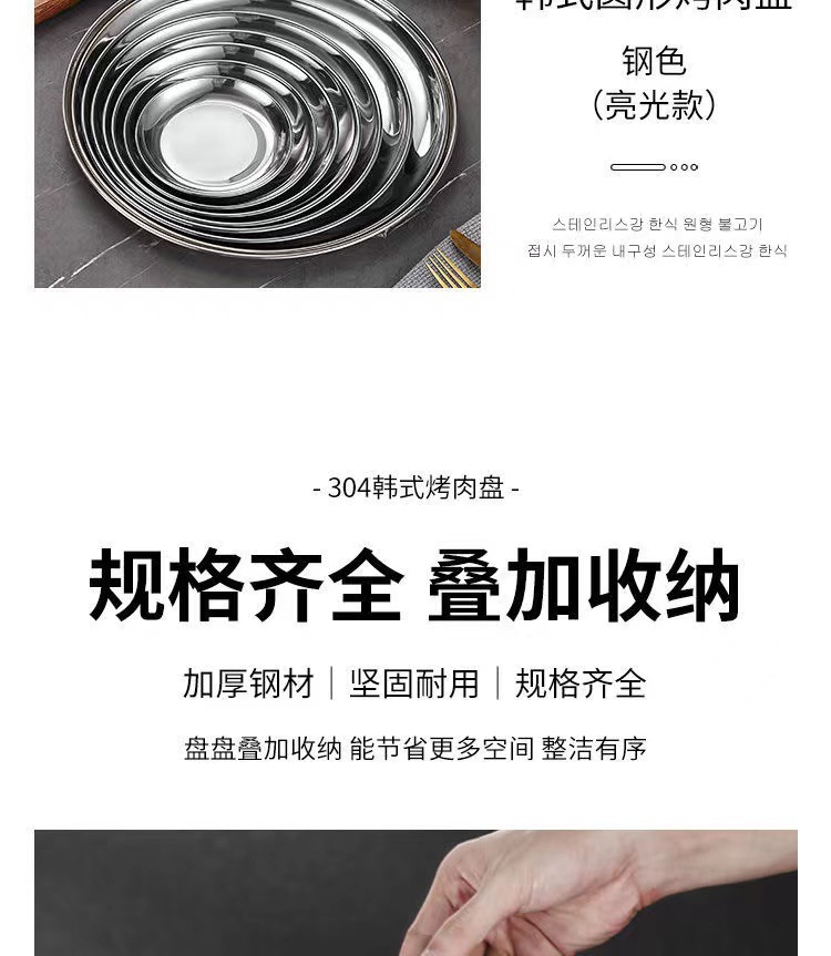 한국식 스테인레스 스틸 304 디스크 골든 플랫 바닥 트레이 바베큐 가게 가정용 상업용 레스토랑 얕은 접시 뼈 접시스토어 가기