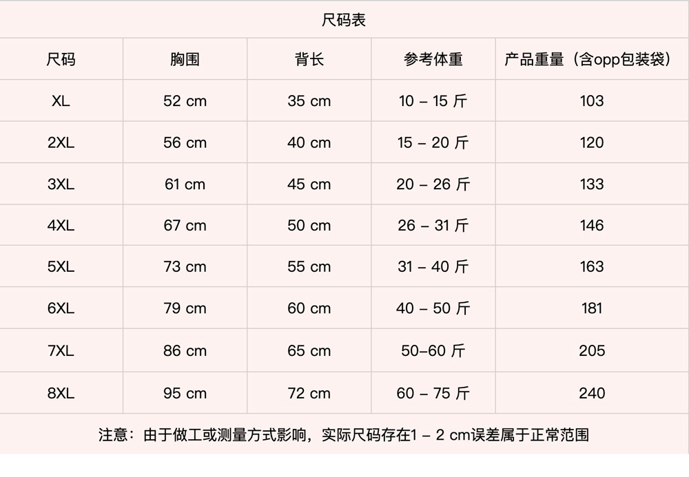 • 4XL (등 길이 50cm)