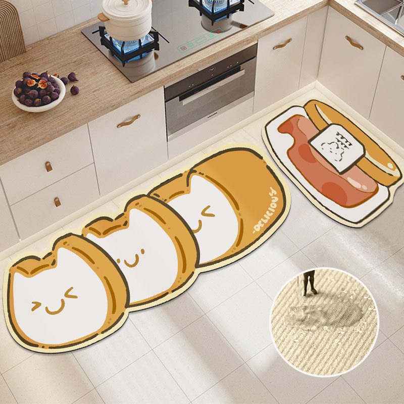 만화 귀여운 음식 크리스탈 벨벳 주방 매트 3D 인쇄 카펫 바닥 매트 입구 침실 침대 옆 담요스토어 가기