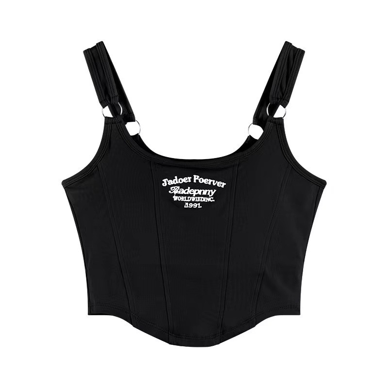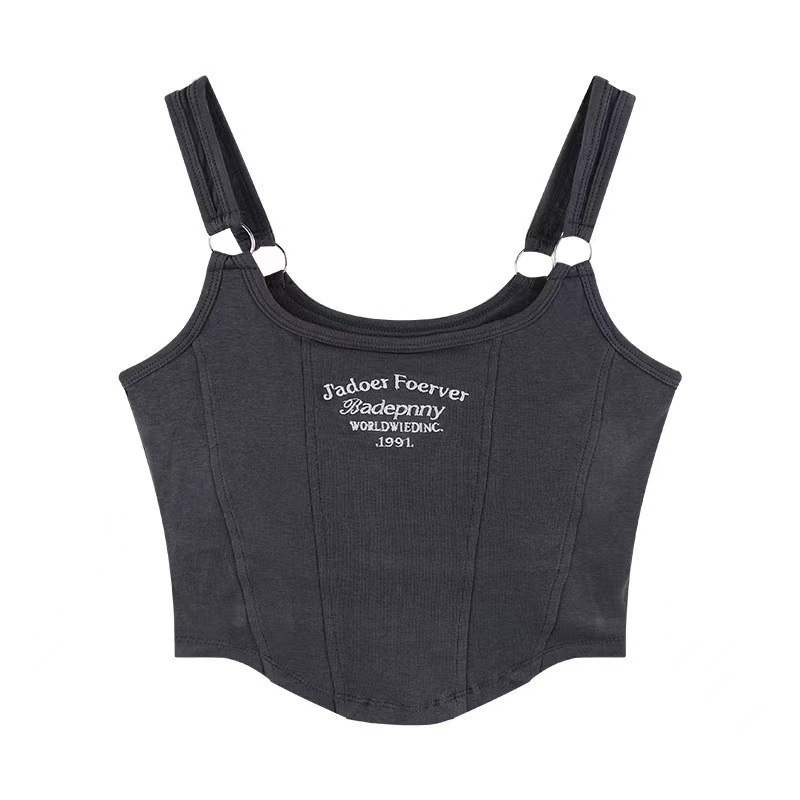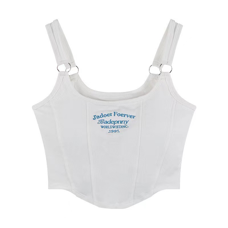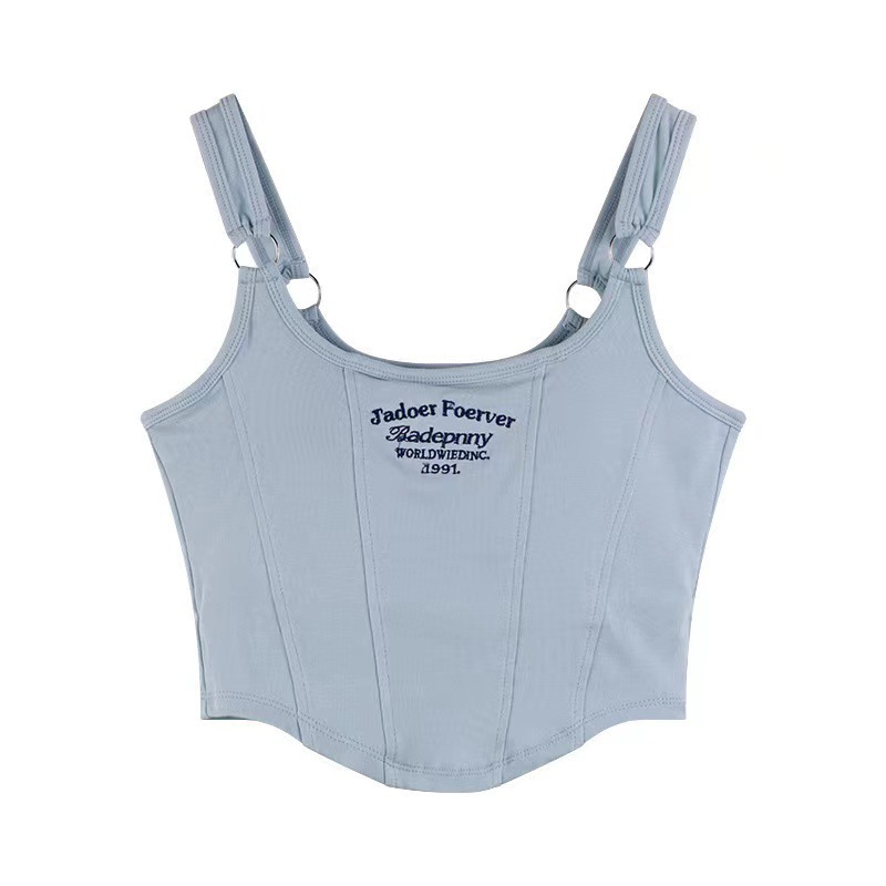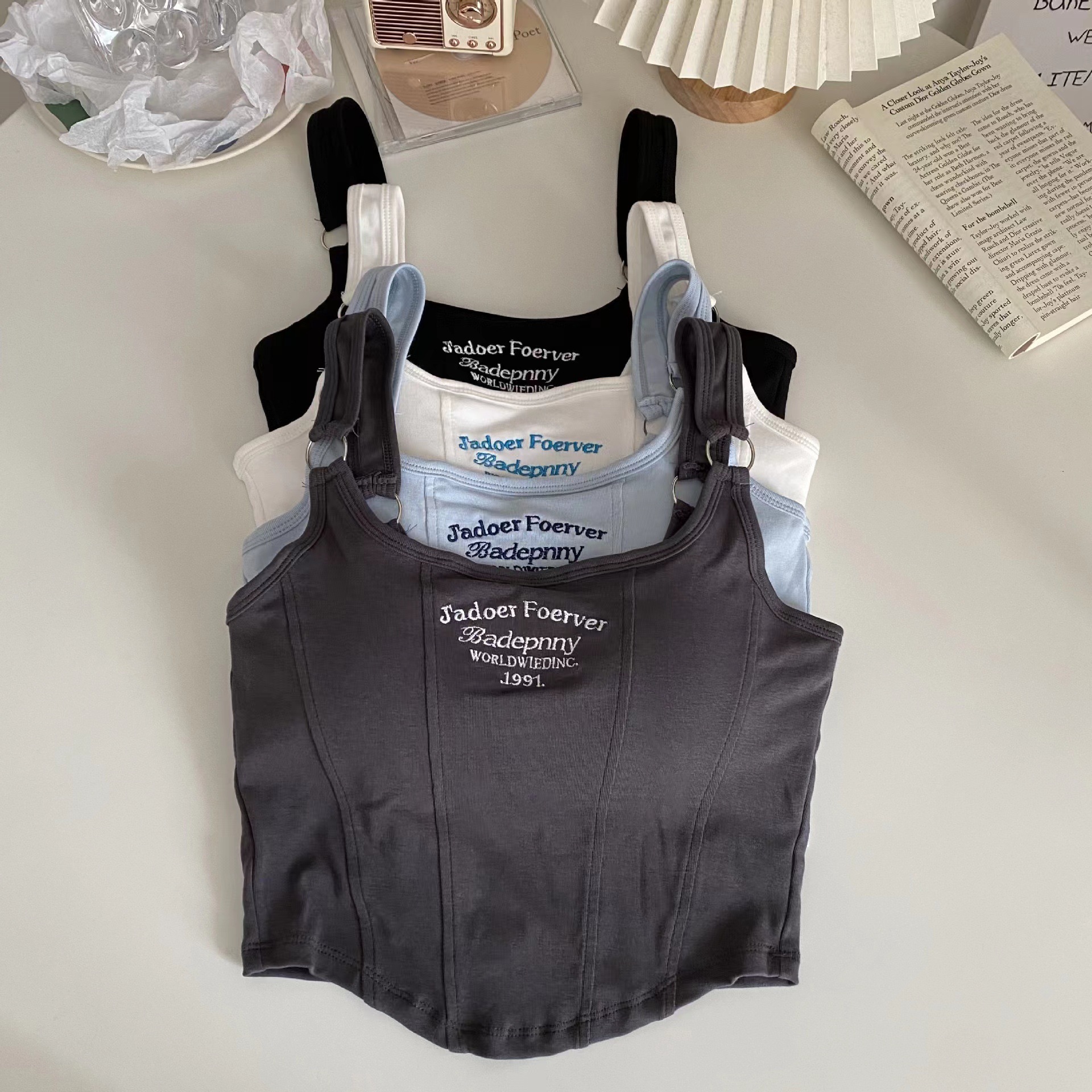 가슴 패드가있는 작은 스트랩 조끼 여성용 하이 엔드 센스 편지 자수 슬림 내부 슬림 겉옷 뜨거운 소녀 순수한 욕망 탑