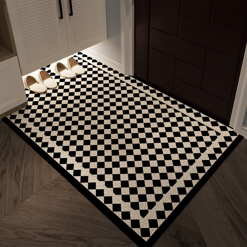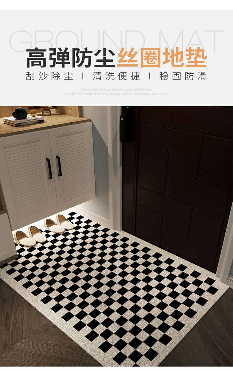 간단한 바둑판 입구 문 매트 가정용 입구 진흙 긁기 발 매트 입구 먼지 방지 실크 링 입구 바닥 매트