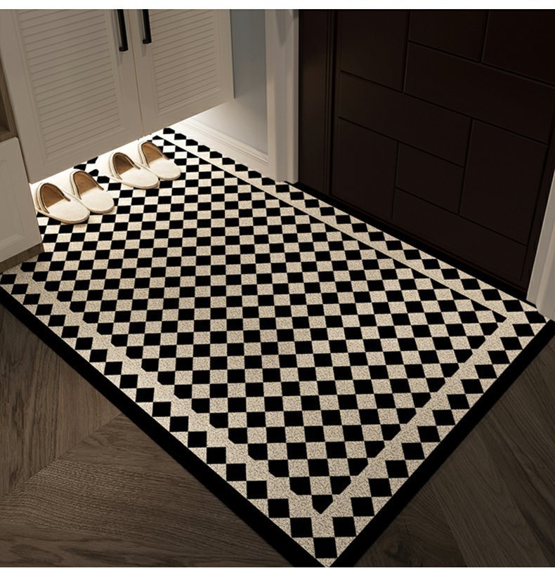 간단한 바둑판 입구 문 매트 가정용 입구 진흙 긁기 발 매트 입구 먼지 방지 실크 링 입구 바닥 매트스토어 가기